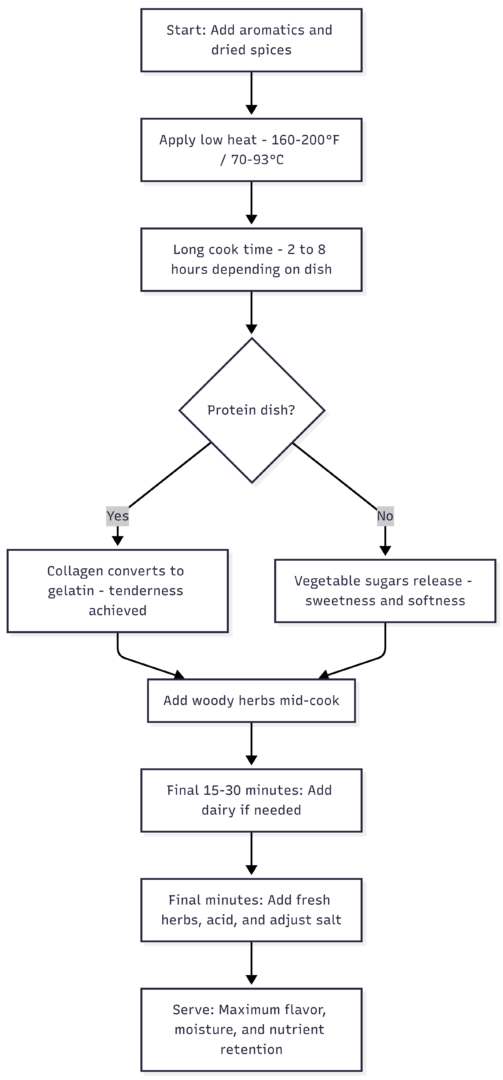 This timing framework—often called flavor layering—is the difference between a flat-tasting slow-cooked dish and one that has dimension, contrast, and vibrancy.
