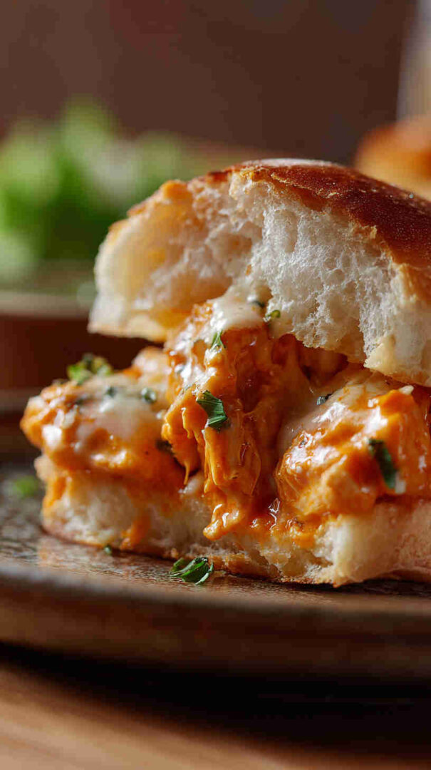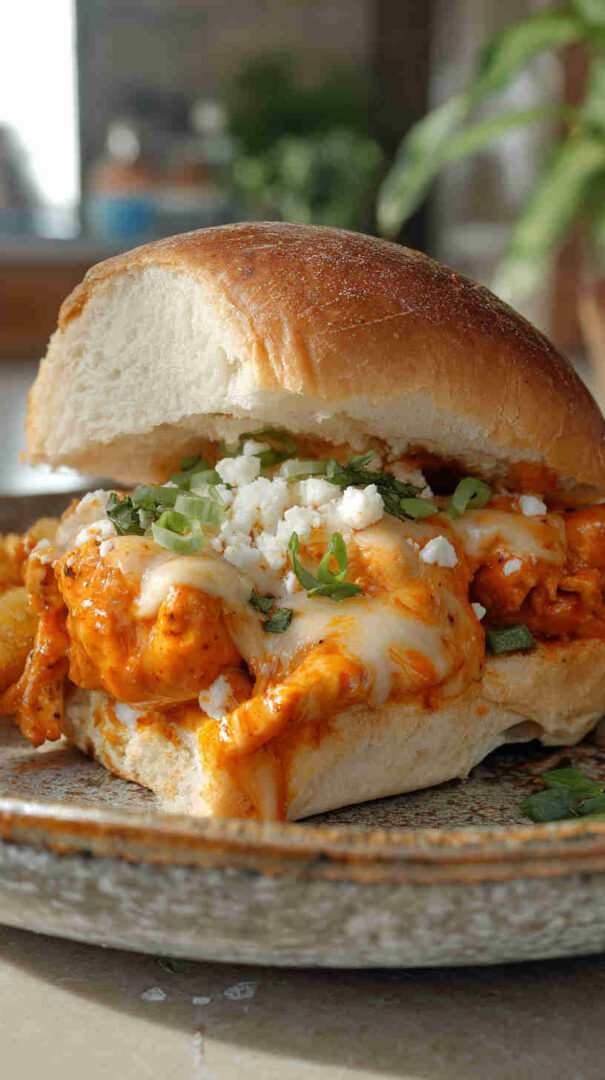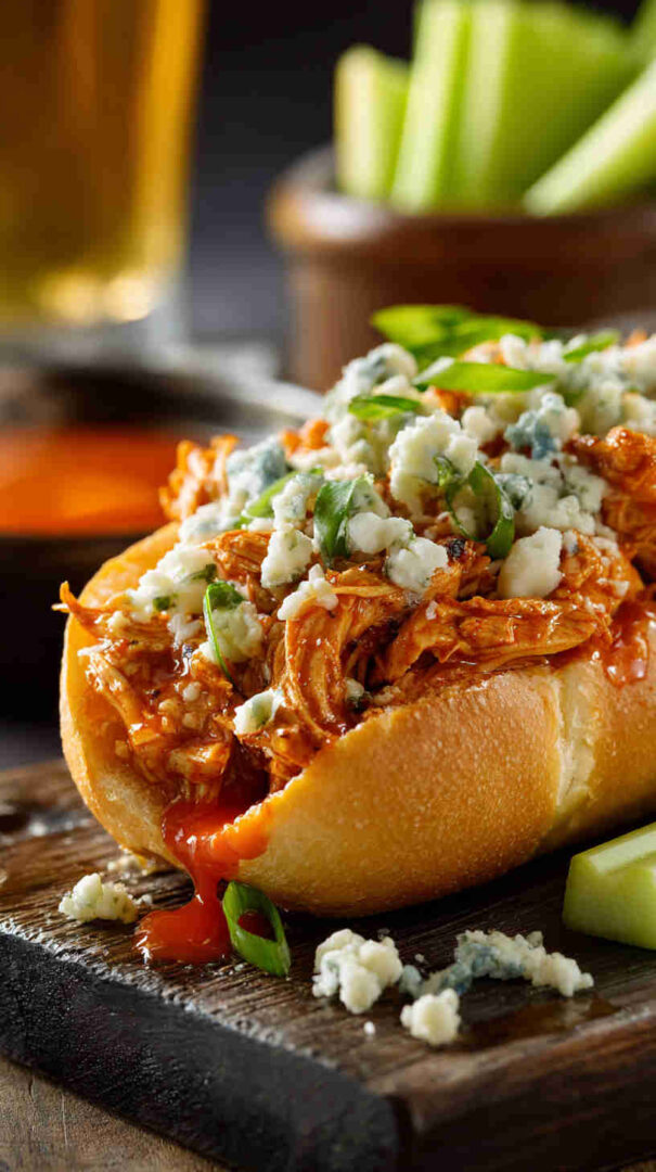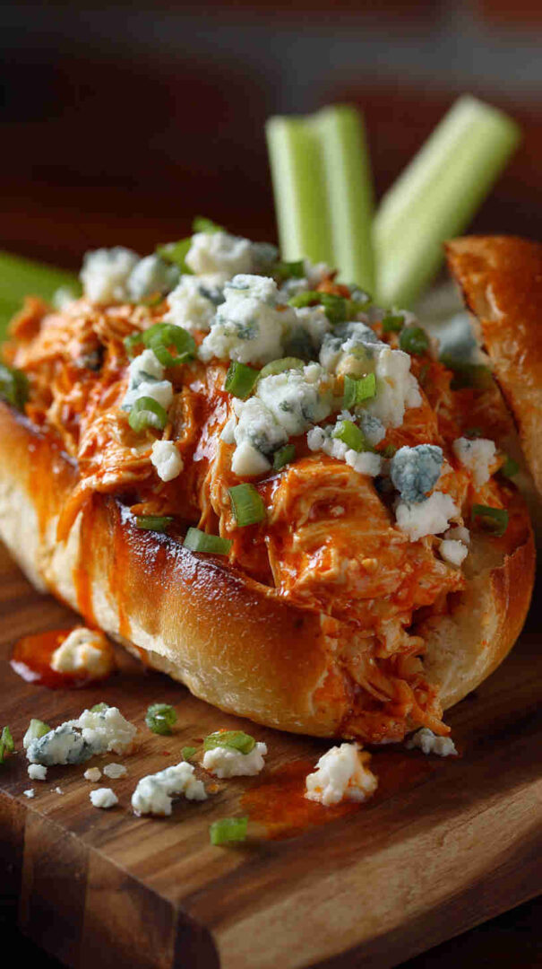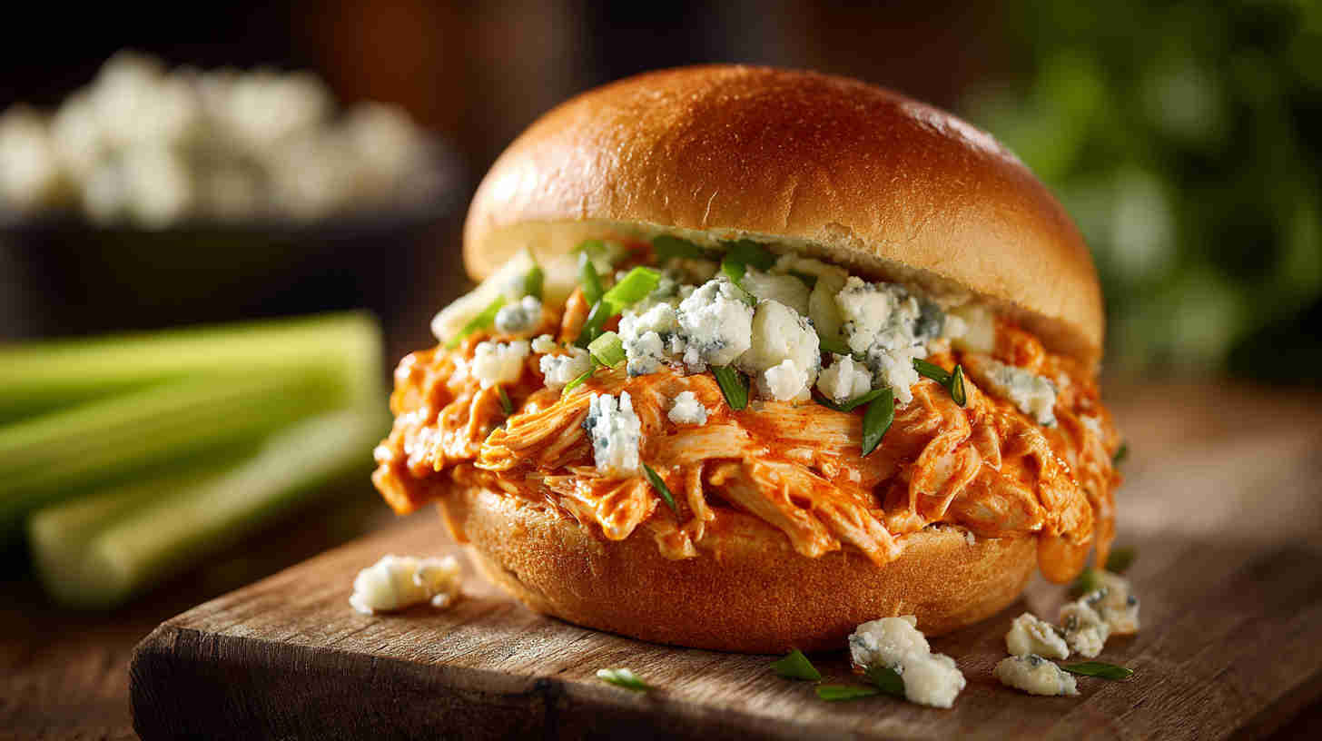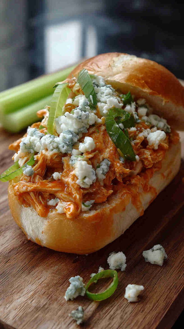 - Finish with your favorite toppings—drizzle ranch, sprinkle blue cheese crumbles, add celery for crunch—and dig in! These sandwiches are messy, spicy, and totally addictive. Enjoy every bite!