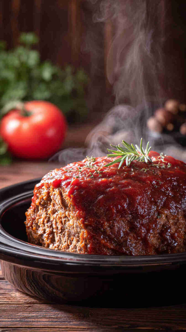 This juicy, tender slow cooker meatloaf brings classic comfort with minimal effort.