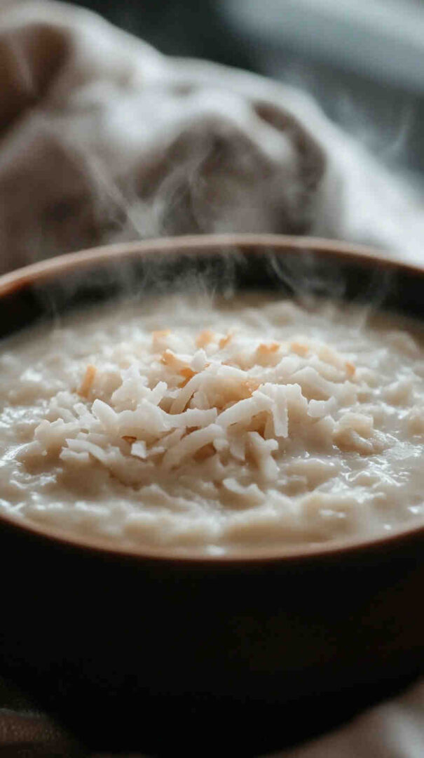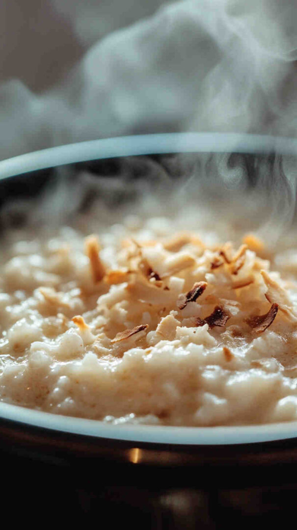 - Serve warm in cozy bowls, garnished with toasted coconut, a sprinkle of cinnamon, or fresh lime zest for a bright pop. Enjoy the creamy, tropical bliss that feels like a hug in a bowl!