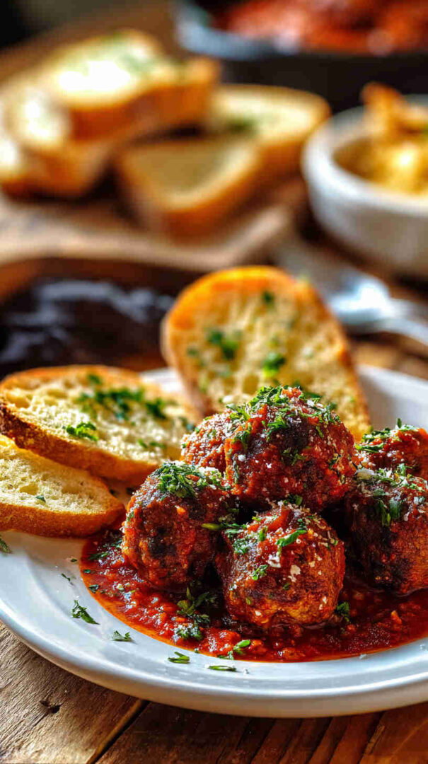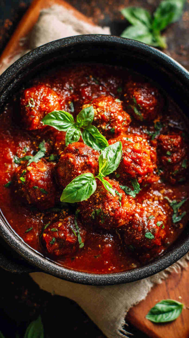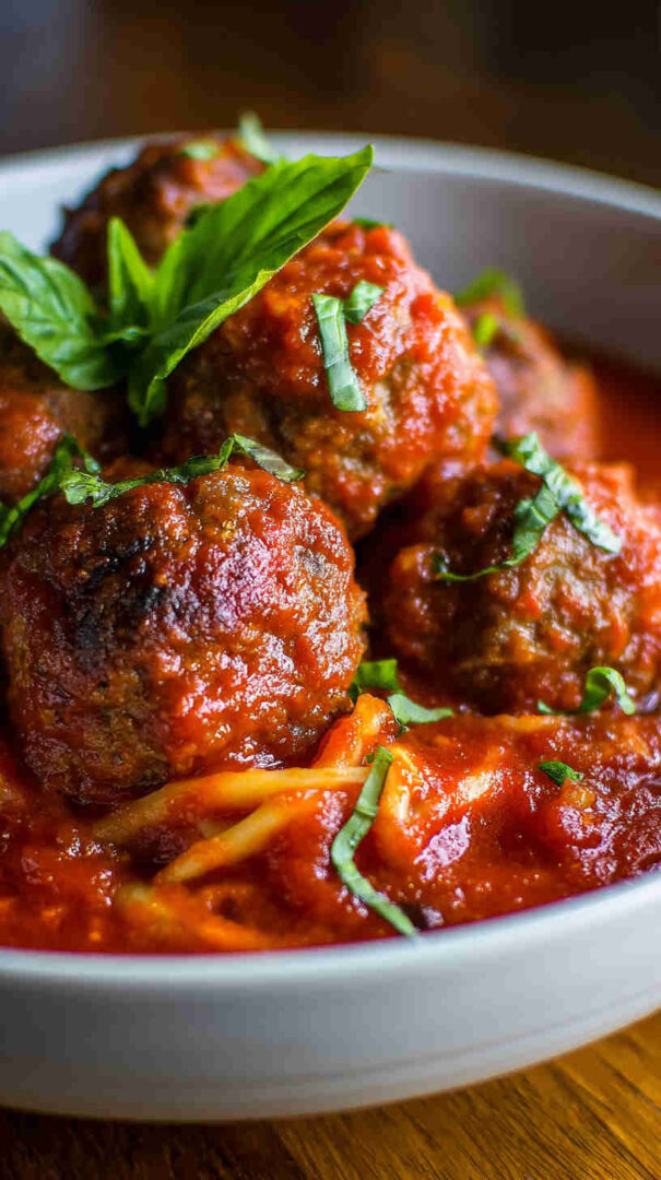 Store leftovers in an airtight container in the refrigerator for up to 4 days. Reheat gently on the stovetop over low heat or in the microwave in short bursts, stirring occasionally and adding a splash of water if the sauce thickens too much. For longer storage, freeze cooled meatballs in sauce in freezer-safe containers or bags for up to 3 months. Thaw overnight in the fridge before reheating slowly to maintain texture.