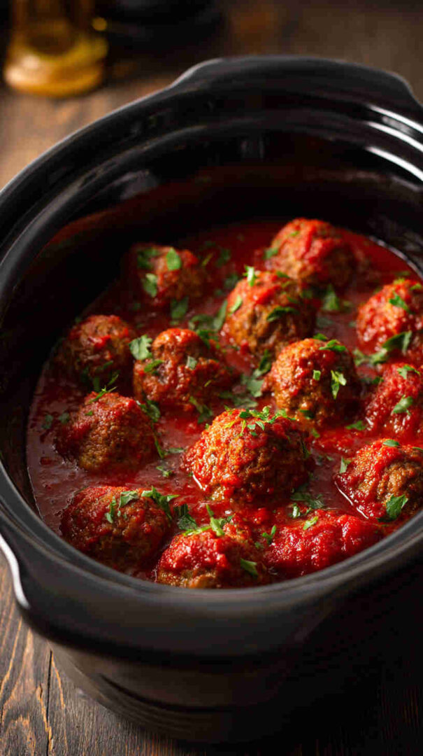Tender slow cooker meatballs in a sweet-tangy cranberry glaze—easy, festive, and irresistibly delicious.