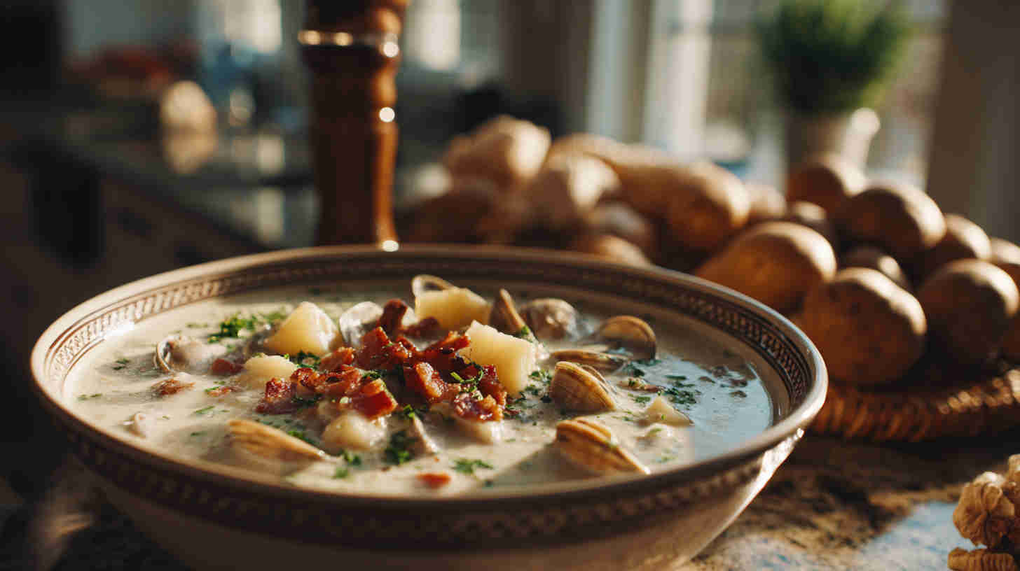 This chowder relies on high-quality canned chopped clams (with their juice) for that signature briny sweetness—look for brands packed in natural juice rather than water. Russet or Yukon Gold potatoes provide the perfect starchy bite and help thicken the broth naturally as they cook.