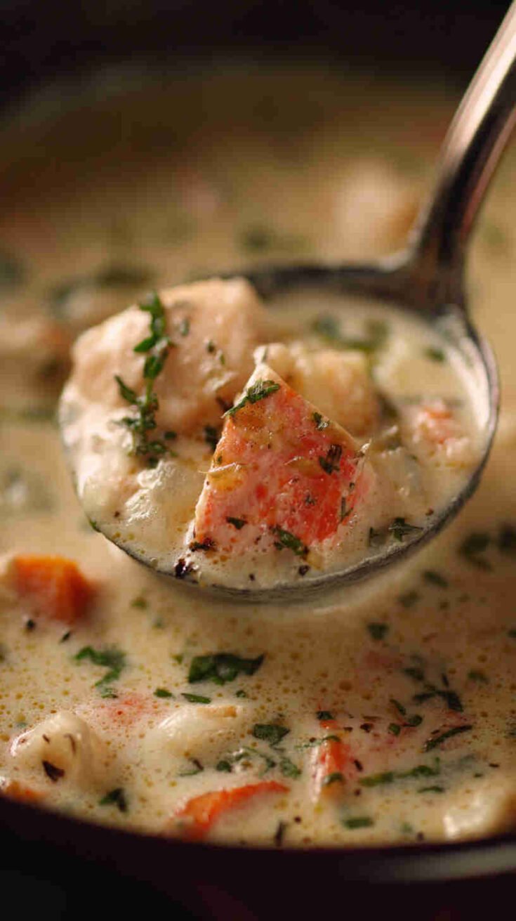 Indulge in Crockpot Creamy Seafood Chowder, a luxurious slow-cooker soup with tender shrimp, scallops, flaky fish, and potatoes in a rich, velvety cream broth infused with garlic, thyme, and a touch of wine. This elegant yet easy seafood dish is perfect for special dinners.