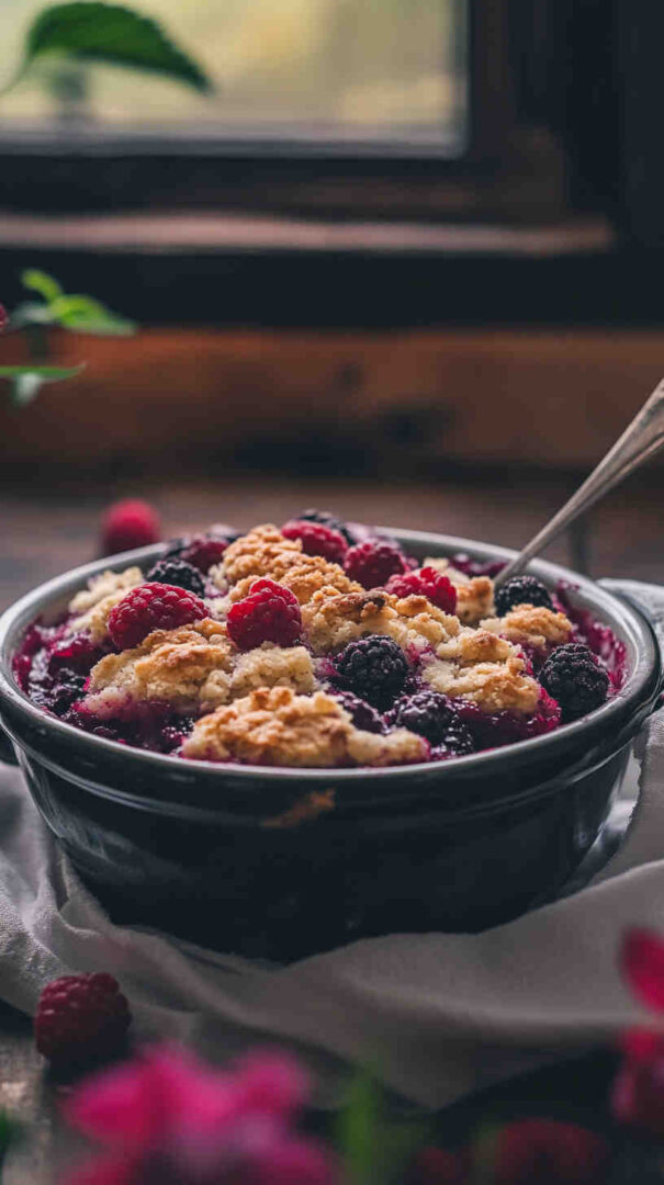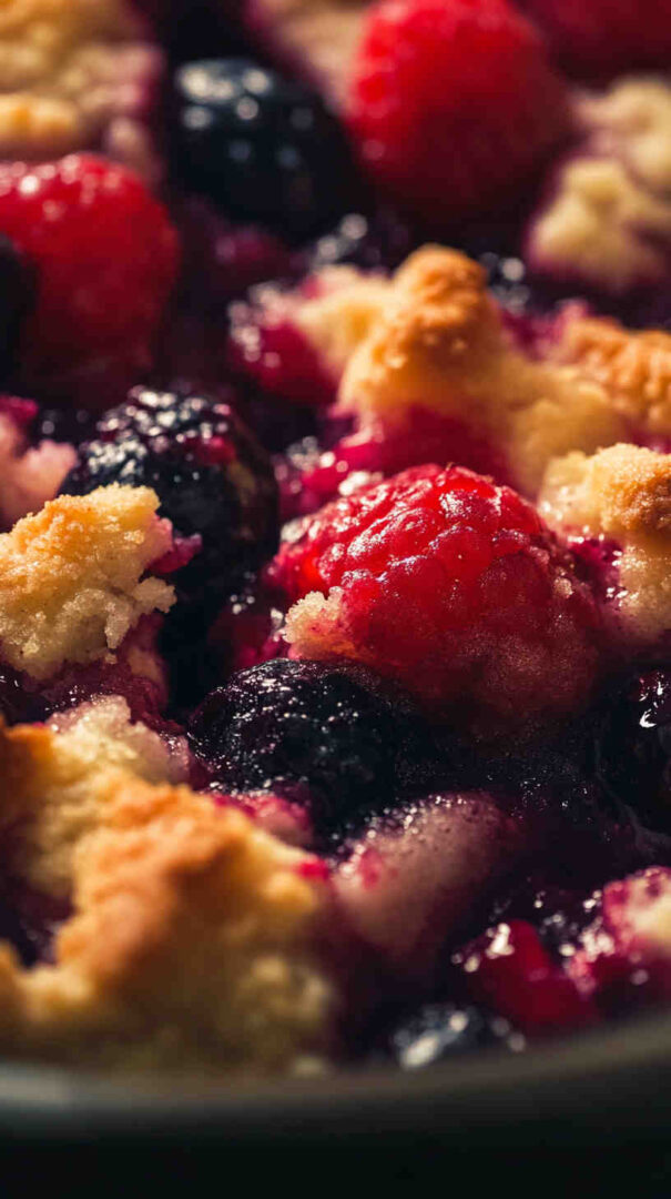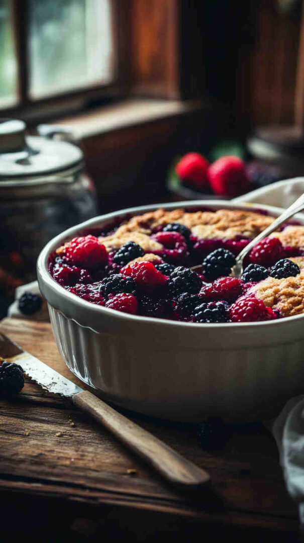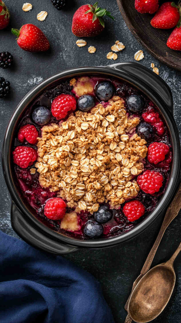 Baking powder provides gentle lift for a fluffy biscuit-like texture. A pinch of salt and optional cinnamon or vanilla deepen the cozy flavors. Milk (dairy or plant-based) and melted butter or coconut oil bring richness and moisture to the batter, ensuring it stays soft even after slow cooking. Cornstarch or arrowroot thickens the berry filling beautifully as it simmers.