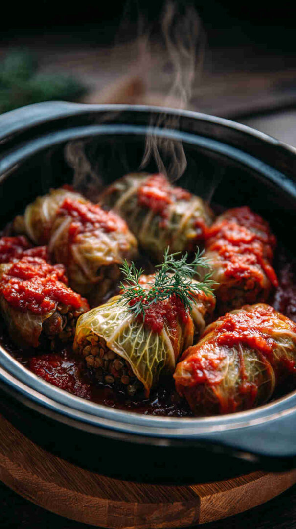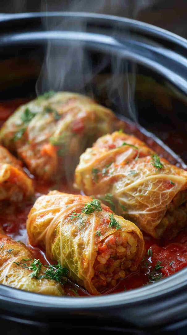 The slow cooker gently softens the cabbage while allowing the lentils and rice to absorb the tangy tomato sauce and herbs, resulting in perfectly tender rolls without the traditional fuss of boiling leaves or long oven baking. It’s hearty enough to satisfy meat-eaters yet completely vegetarian (and easily vegan), packed with plant-based protein and fiber.