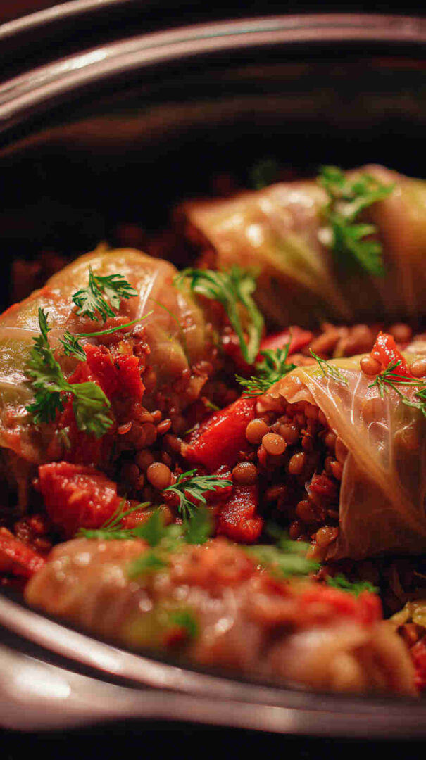 Crockpot Lentil-Stuffed Cabbage Rolls