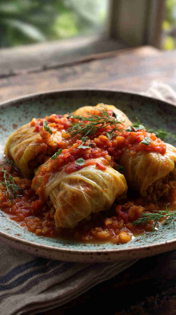 Cabbage leaves can vary in size, so adjust the amount of filling accordingly—smaller leaves may need less. If the rolls seem dry during cooking, add a little extra broth. This dish is naturally gluten-free and vegan when made with vegetable broth. For easier serving, you can make an “unstuffed” version by chopping the cabbage and mixing everything together. The rolls hold up well but are delicate, so handle gently when serving. Leftovers are even more flavorful the next day as the sauce soaks in.