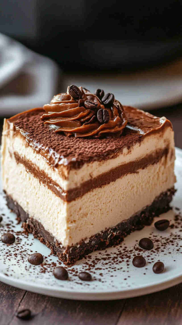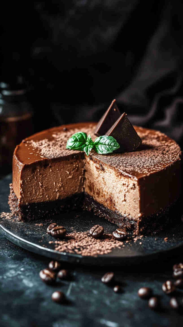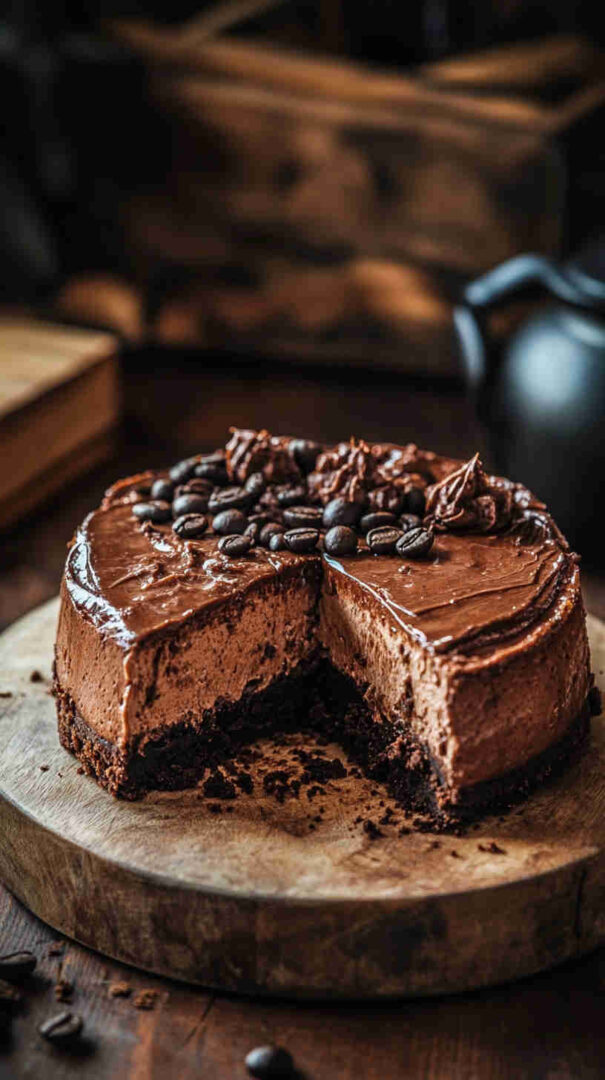 - Chill & serve — Remove the pan, uncover, and refrigerate for at least 6 hours (overnight is magic). Run a knife around the edge, release the springform, slice, and top with whipped cream, chocolate shavings, or coffee beans — then enjoy every mocha-filled bite!