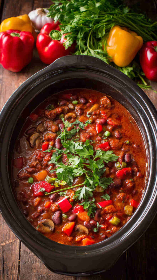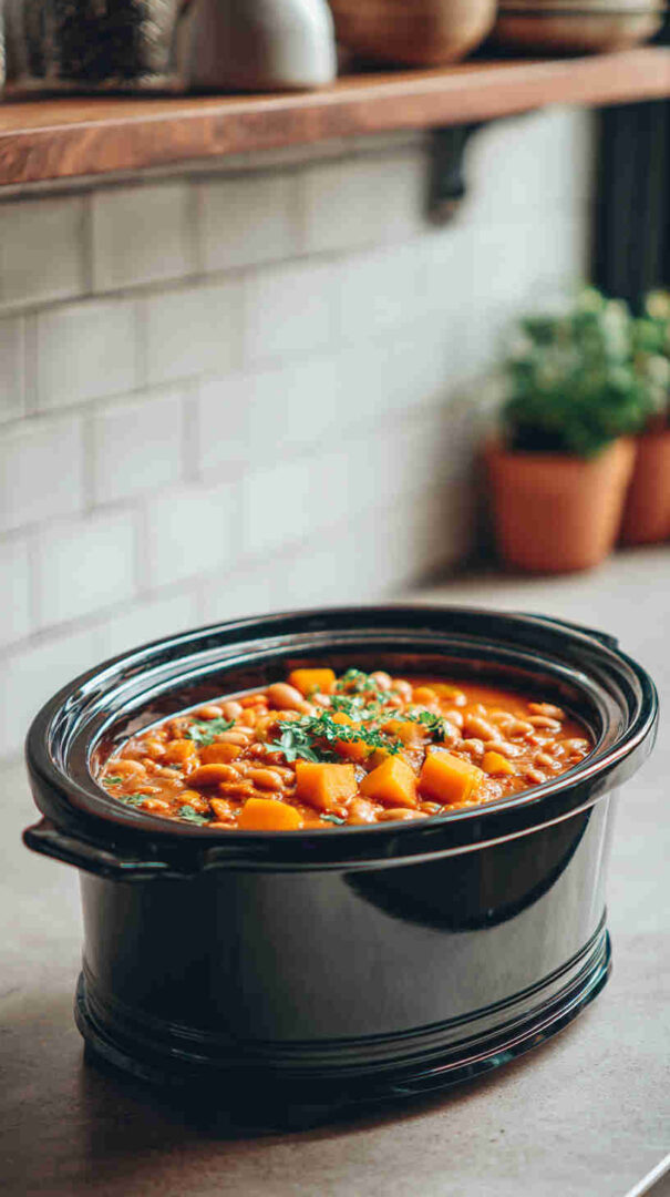 It’s completely vegan and gluten-free, packed with fiber, vitamins, and satisfying plant-based protein, making it nourishing without feeling heavy. The slow cooker makes preparation incredibly simple — just a little chopping and everything simmers together into a flavorful, aromatic meal.