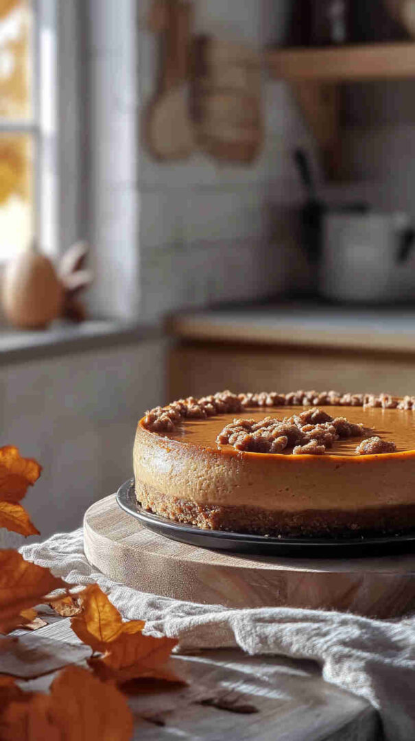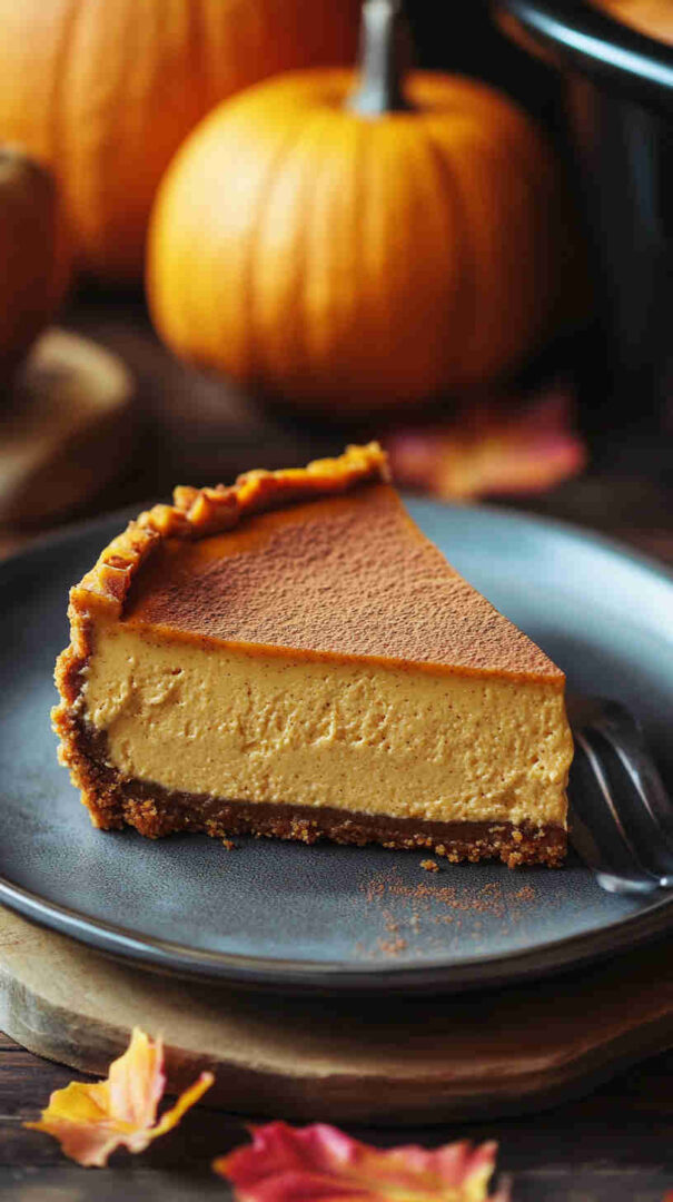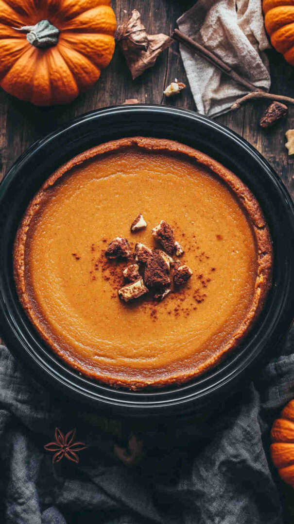 Add a swirl of caramel or dulce de leche into the batter before cooking for a salted caramel pumpkin version. For individual portions, divide the batter into 4–6 mason jars (instead of a springform pan) and cook 1.5–2 hours on low. Spice lovers can increase pumpkin pie spice to 2½ teaspoons or add a pinch of cardamom for extra depth. Dairy-free adaptations are trickier but possible with vegan cream cheese and coconut cream in place of sour cream.