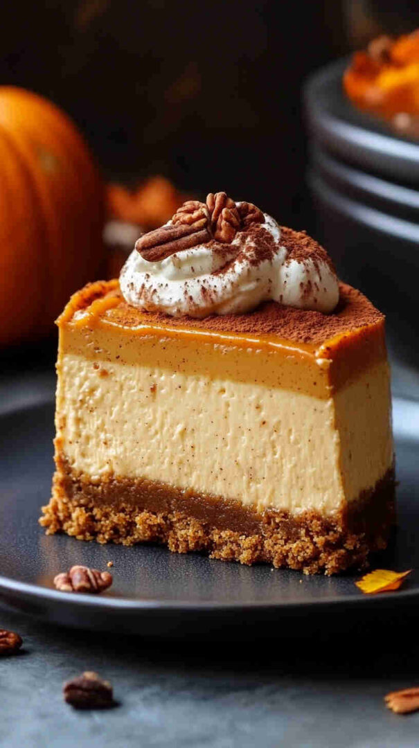 For a lighter twist, substitute half the cream cheese with Neufchâtel cheese (though texture will be slightly less dense). Make it keto/low-carb by using almond flour + butter for the crust, a keto brown sugar substitute, and sugar-free pumpkin puree with monk fruit or erythritol sweetener.