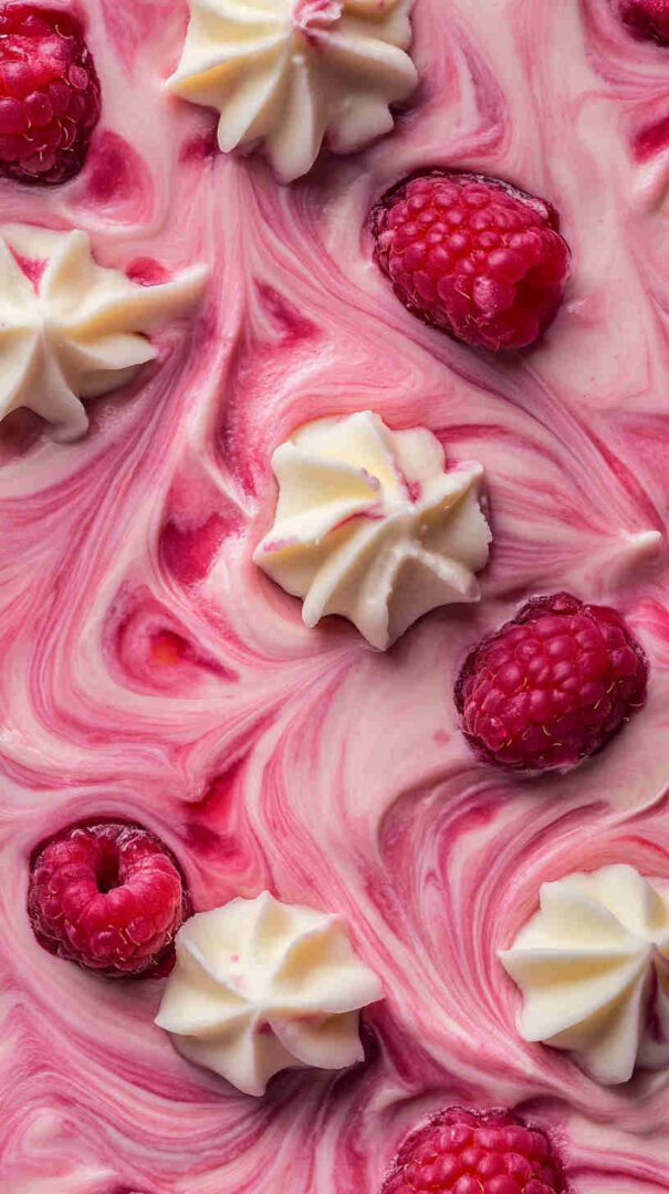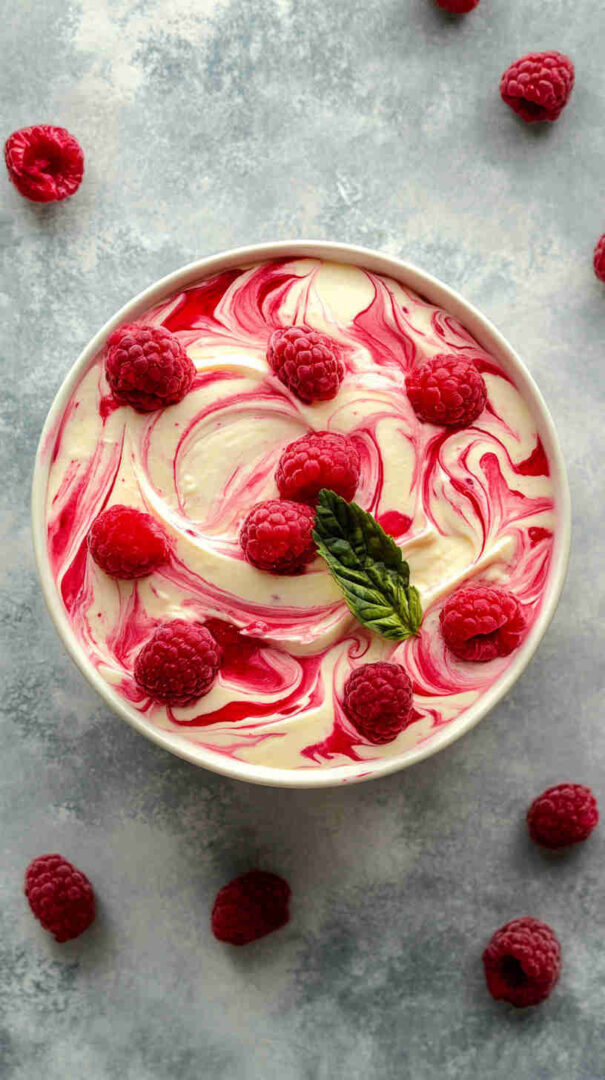 Eggs bind and add creaminess — use large, room-temperature ones. Vanilla extract enhances all the flavors subtly. For the ripple, fresh or frozen raspberries work wonderfully; fresh give brighter color and flavor, but frozen are convenient year-round.