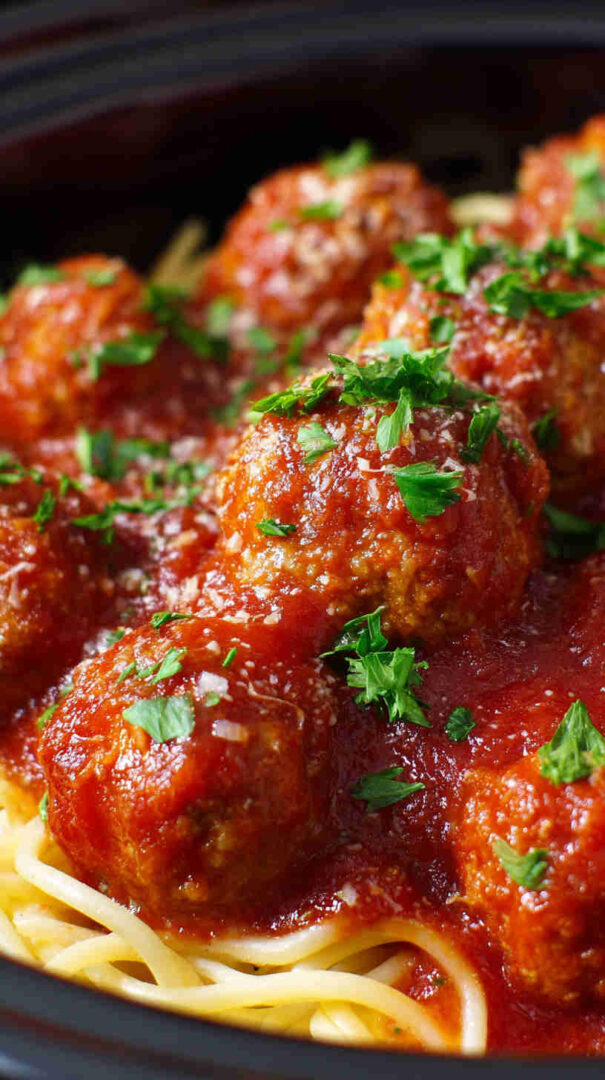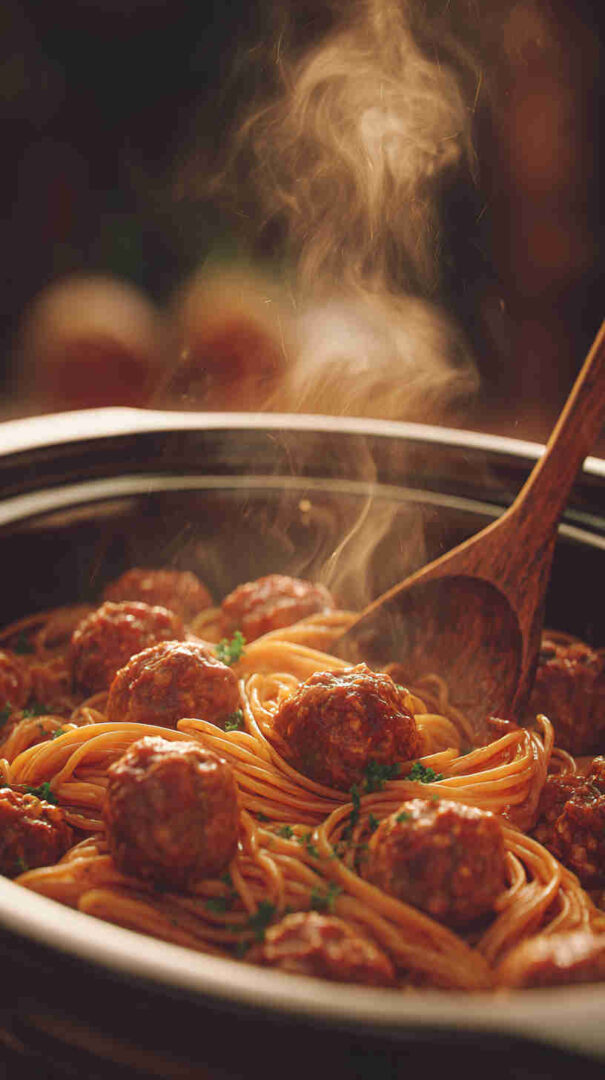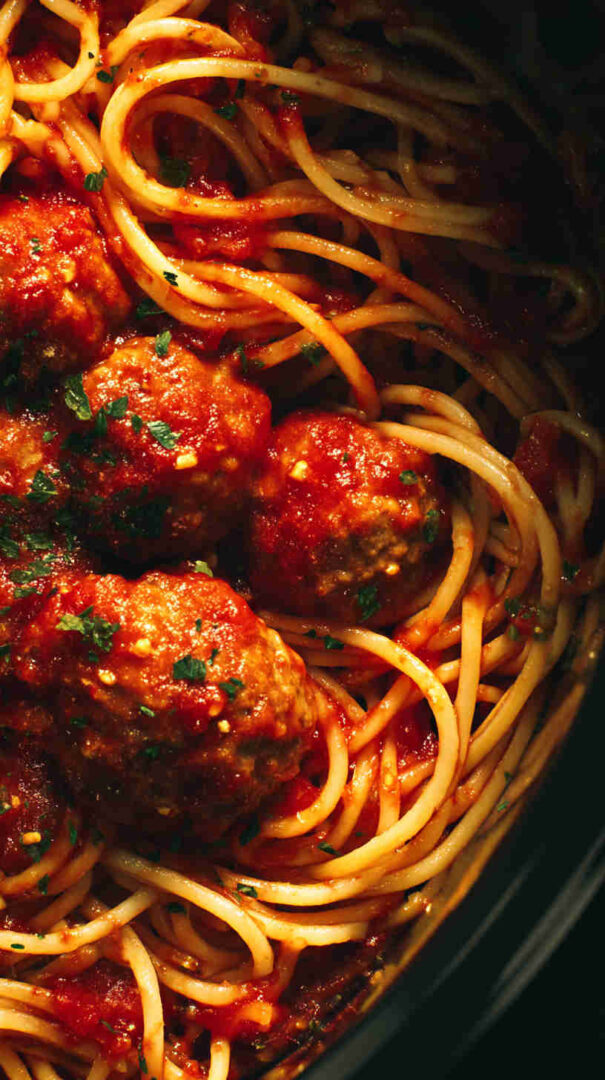 This comforting Crockpot Spaghetti and Meatballs recipe lets your slow cooker do all the work, combining tender frozen meatballs with flavorful marinara sauce and perfectly cooked spaghetti right in the pot. No separate boiling needed — just dump, stir, and enjoy a hearty, family-pleasing Italian dinner with minimal effort and maximum taste.