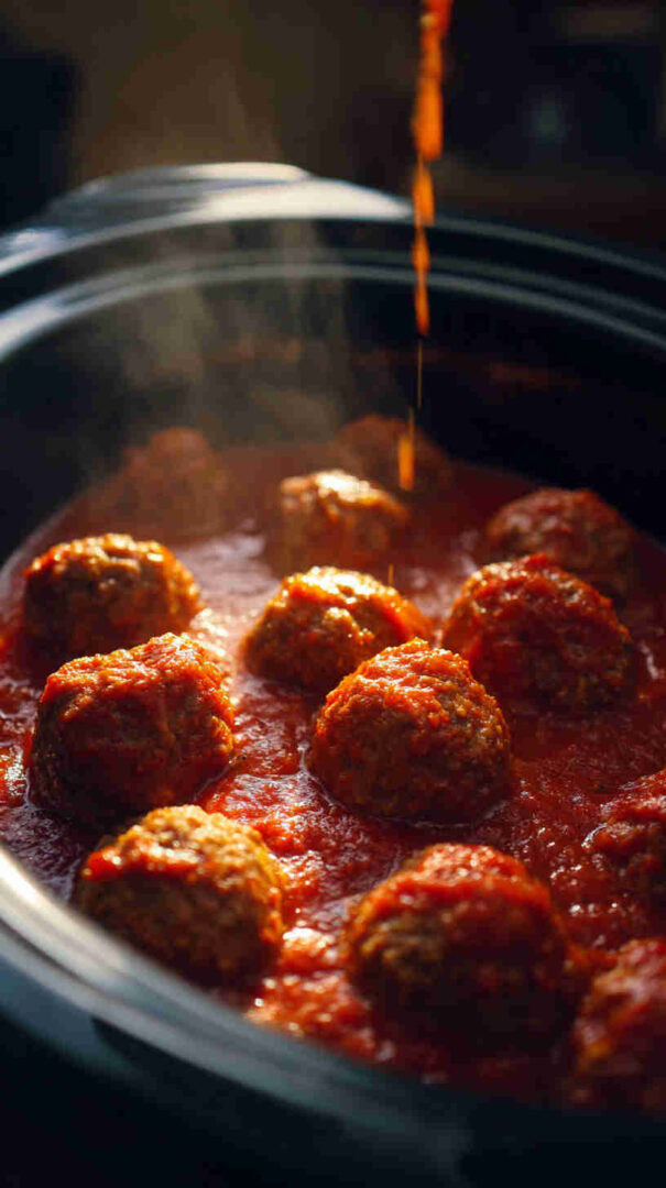 This is a true “dump and go” recipe, but stirring halfway is the secret to perfect texture. If your sauce seems too thick near the end, add a little extra broth. Frozen meatballs work best here — homemade ones may need pre-cooking to avoid falling apart.