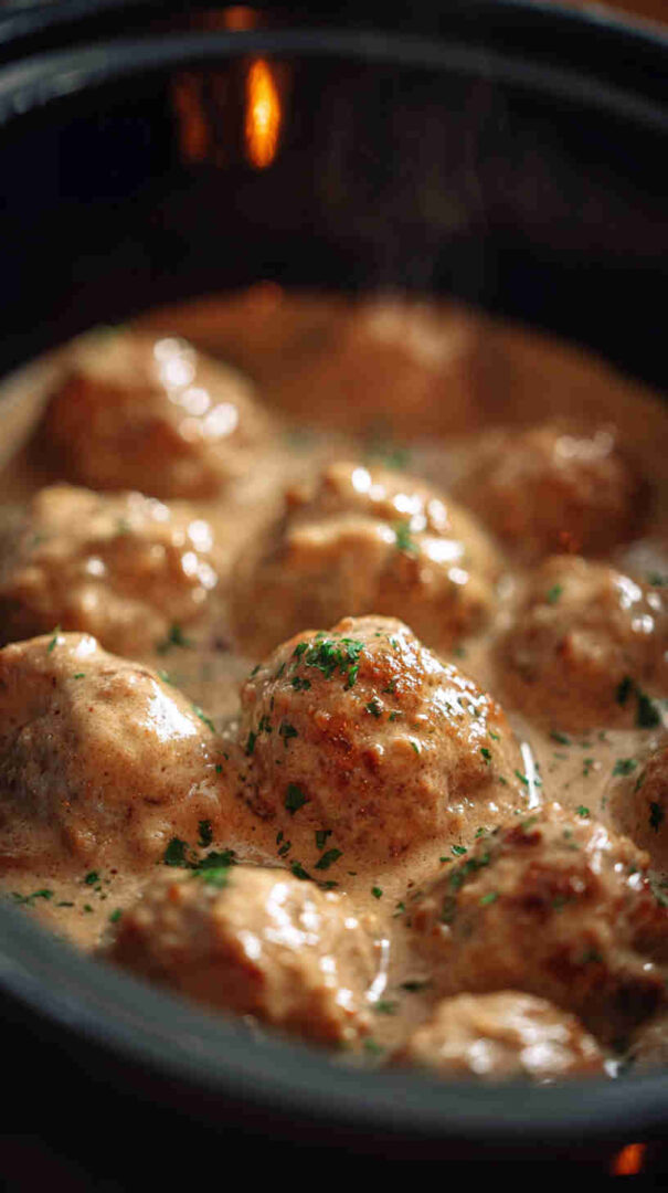 The sauce turns out luxuriously creamy and tangy thanks to sour cream stirred in at the end — no complicated roux or constant stirring required. It’s a true set-it-and-forget-it wonder that feels like a home-cooked gourmet meal but uses convenient shortcuts like frozen meatballs and pantry staples.