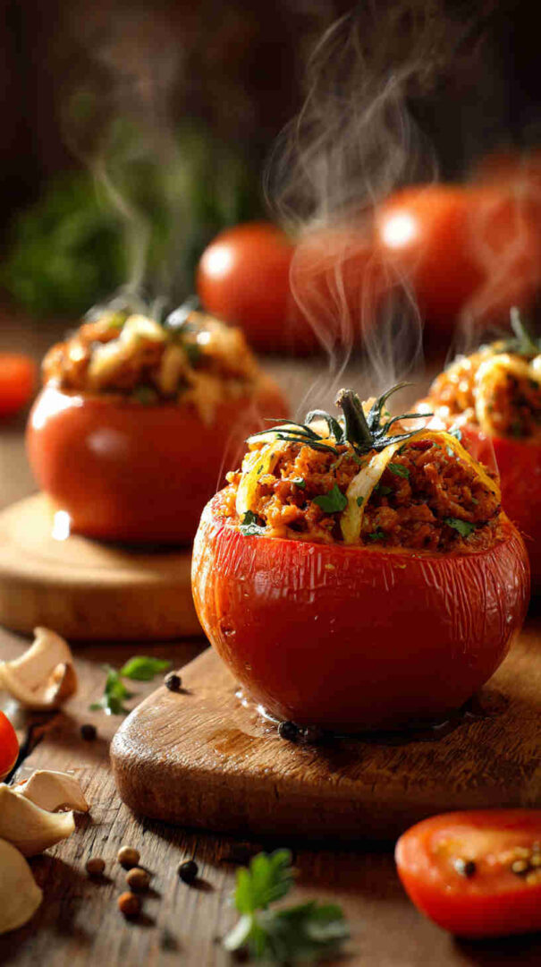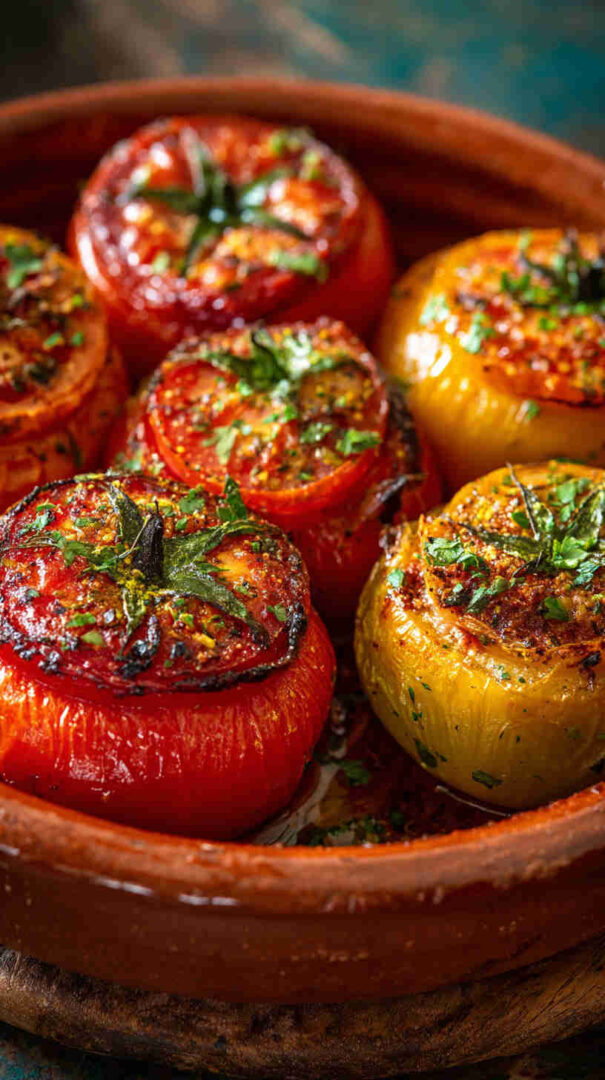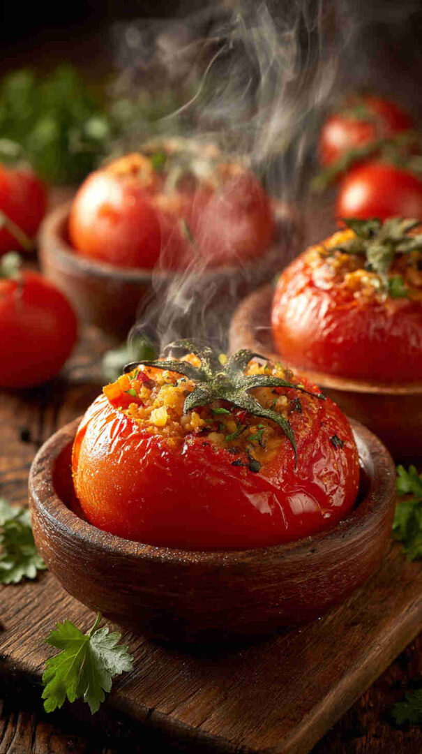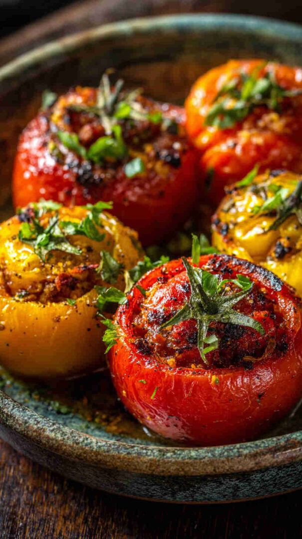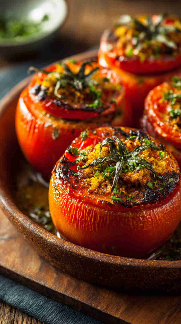 Allow the stuffed tomatoes to cool completely before storing in airtight containers with some sauce. Refrigerate for up to 3–4 days—the flavors continue to develop nicely. For longer storage, freeze in portioned containers for up to 2 months.
