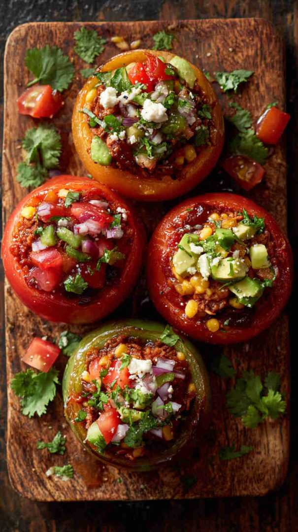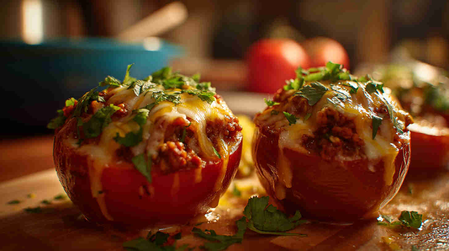 Choose large, firm, ripe tomatoes that are similar in size so they cook evenly and hold their shape. Scoop out the pulp carefully, leaving a sturdy ¼-inch wall—save the pulp to add to the filling or sauce for extra flavor and moisture. Brown the meat and sauté the aromatics first to develop rich taco flavor.