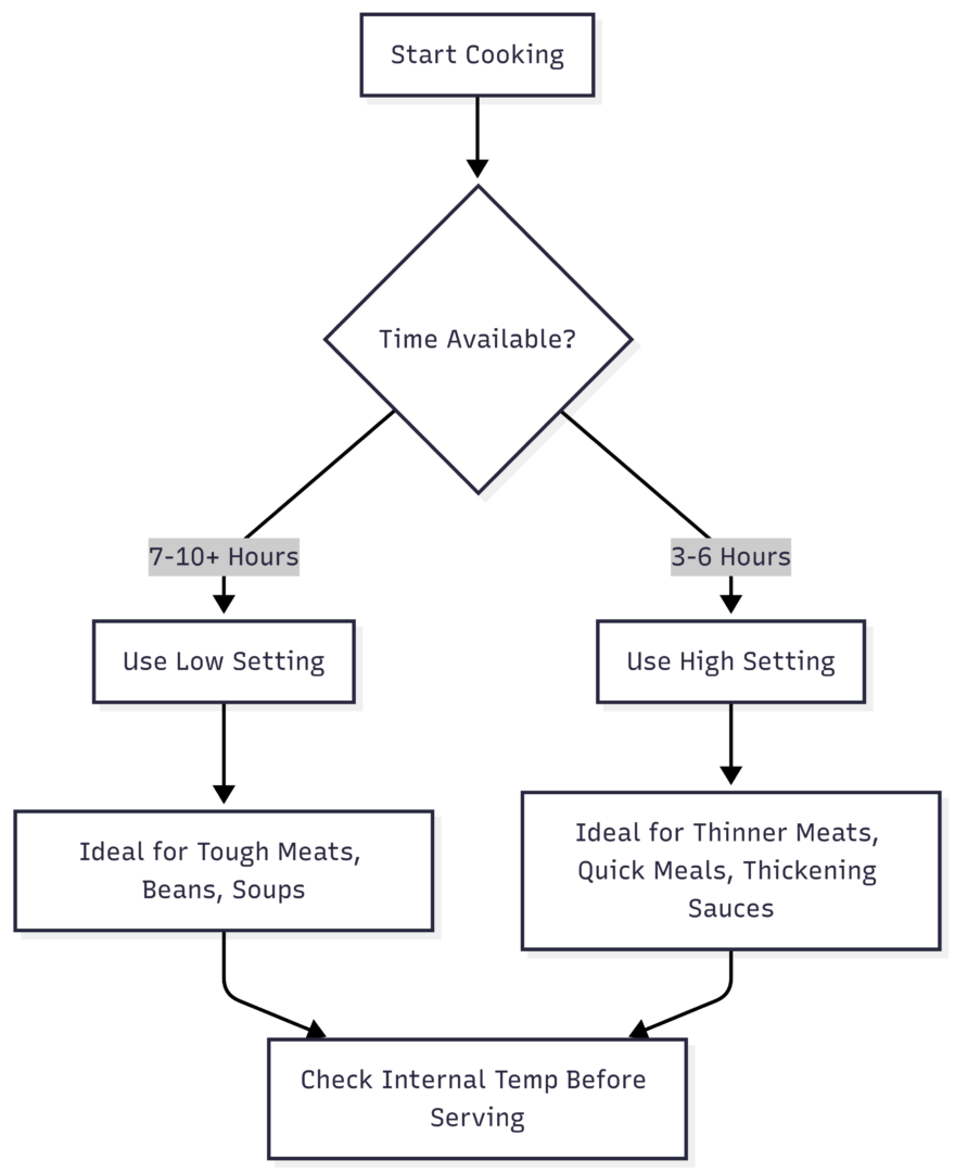This diagram helps decide based on schedule and food type, ensuring you avoid common pitfalls like undercooking.