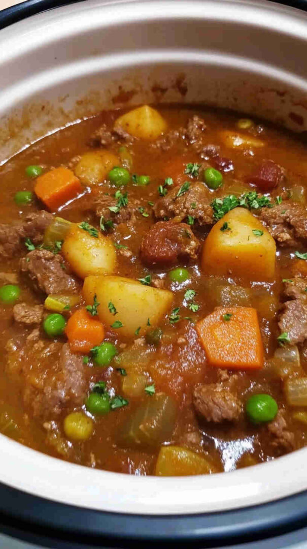 This hearty, set-it-and-forget-it crockpot beef stew delivers tender meat and veggies in a savory broth—comforting and nutritious!