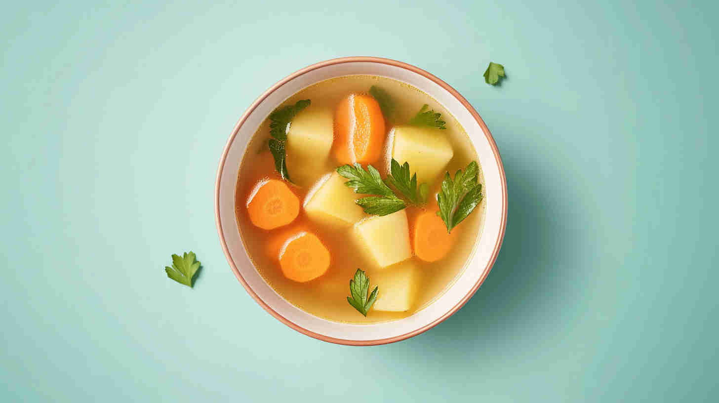 This soup shines with simple, everyday vegetables that provide layers of natural sweetness, earthiness, and freshness. Yellow onion and garlic form the aromatic base, while carrots and celery add classic mirepoix depth.