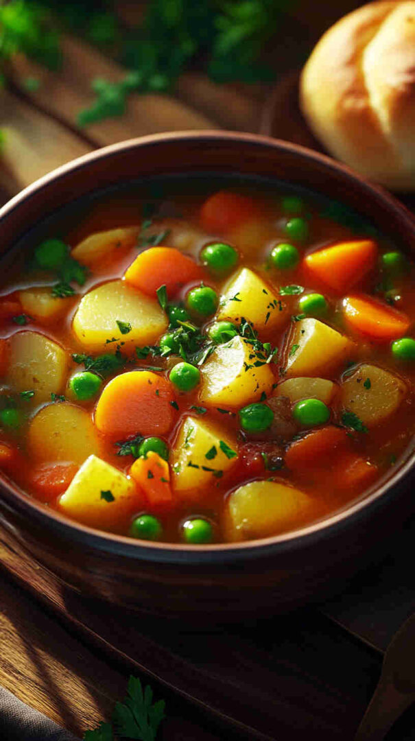 Yukon gold or russet potatoes bring heartiness and a bit of starch for body without needing flour. Fire-roasted diced tomatoes offer smoky richness and acidity that balances everything beautifully—use no-salt-added if preferred. Frozen mixed vegetables (like peas, corn, green beans) make prep effortless and add color/pop; fresh works too but frozen is convenient and often just as nutritious.