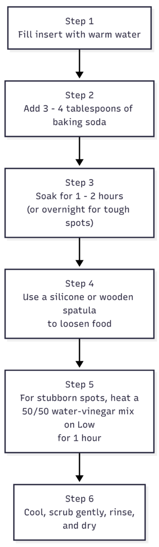 Scorched BBQ glazes and caramelized sauces are the toughest slow cooker messes. Here’s a step-by-step approach that won’t damage the ceramic: