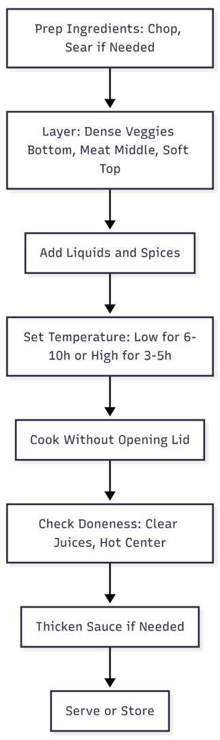 For visual aid, here’s a flowchart for the slow cooking process:
