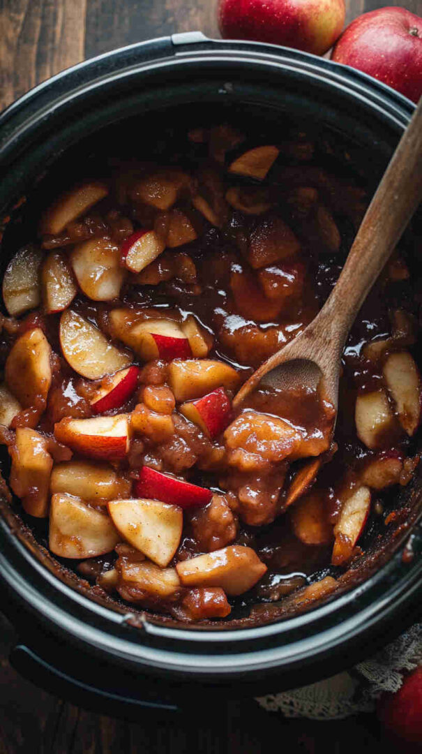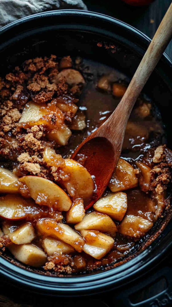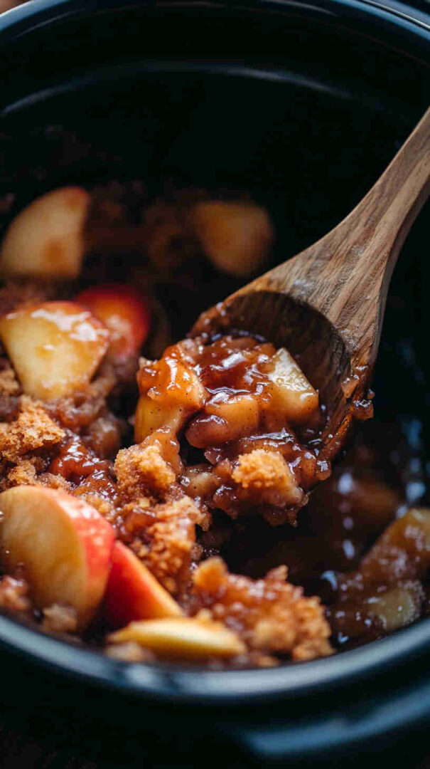 A simple slow cooker dessert with tender apples, warm spices, and a soft buttery topping, perfect for effortless homemade comfort.