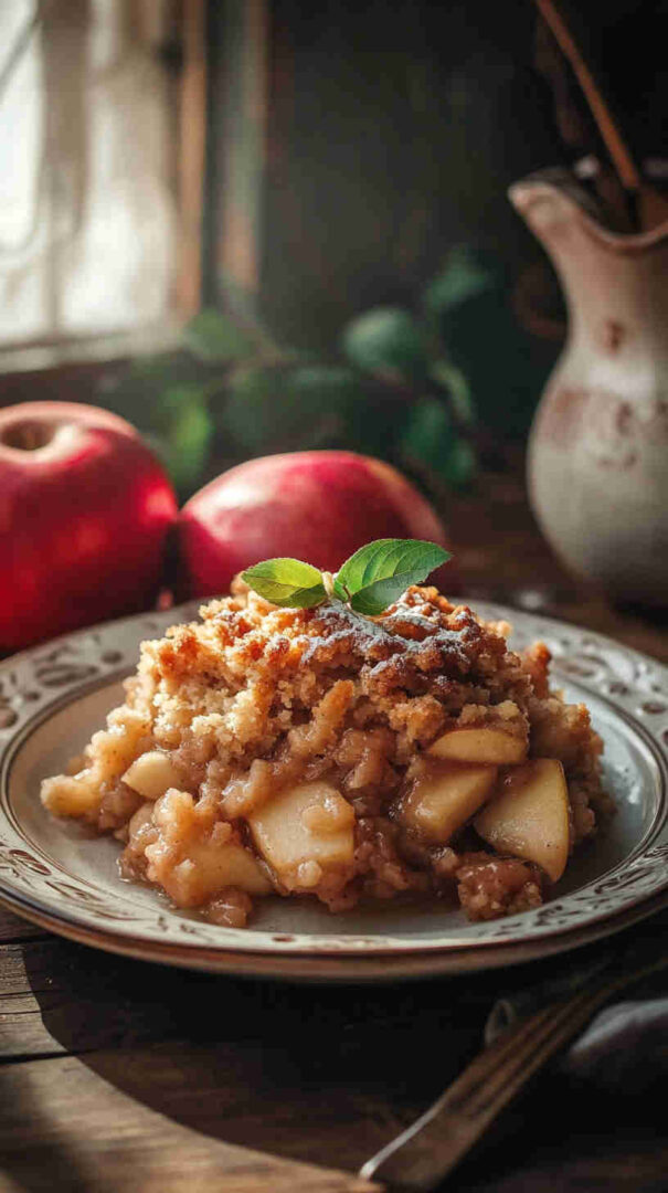 If you enjoy desserts that feel homemade without requiring constant attention, this recipe will quickly become a favorite. The slow cooker gently softens the apples while allowing their natural sweetness to deepen and blend beautifully with warm spices like cinnamon and nutmeg. The topping becomes perfectly fluffy yet slightly crisp around the edges, creating a delightful contrast in texture.
