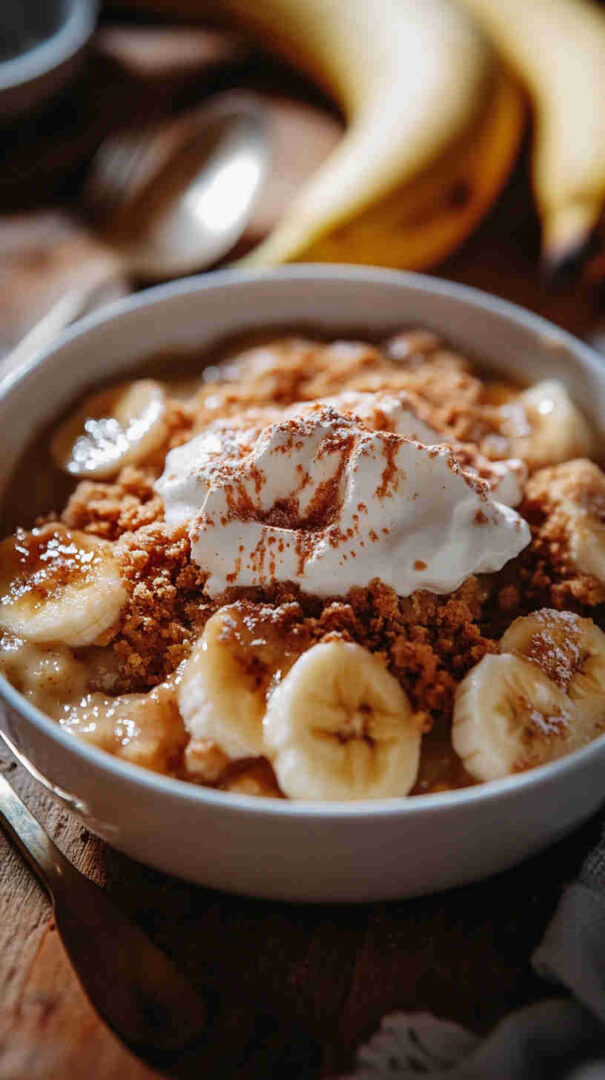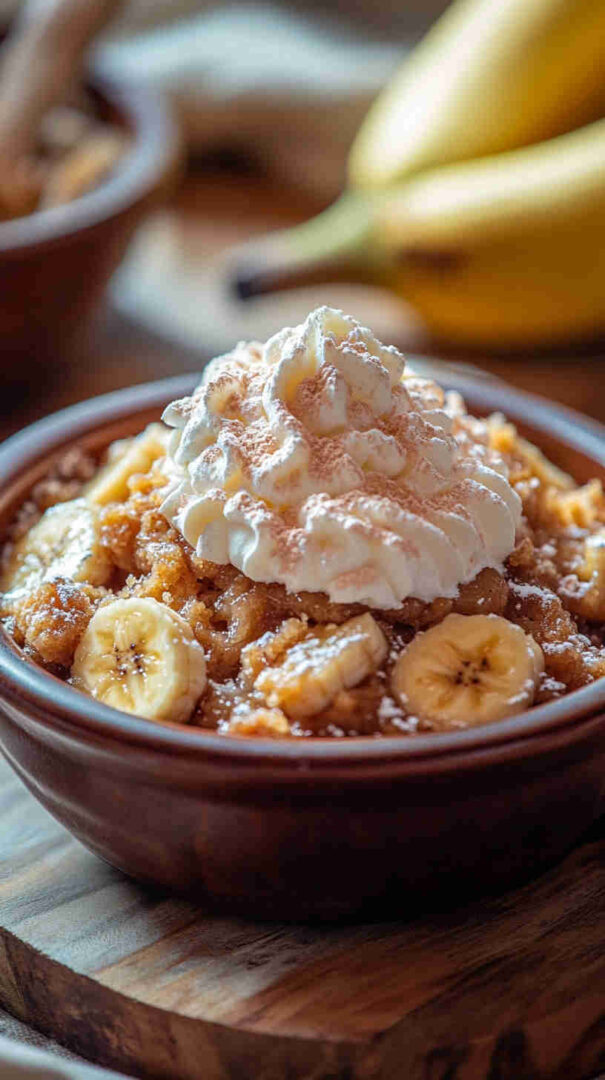 The bananas become soft and caramel-like, while the topping turns fluffy and slightly crisp at the edges. It’s also incredibly forgiving—perfect for beginner cooks—and a great way to use overripe bananas that might otherwise go to waste. The aroma alone will make your kitchen feel warm and inviting, and it pairs beautifully with ice cream or whipped cream.