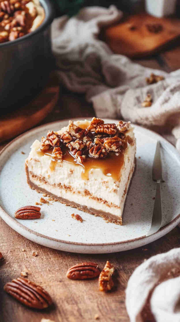 No water bath hassles, no temperature fluctuations, just set-it-and-forget-it convenience. The brown sugar in the filling adds deep caramel notes that pair perfectly with the nutty graham-pecan crust, while the crowning glory—a buttery, homemade caramel sauce loaded with toasted pecans—brings irresistible crunch and gooey decadence in every bite.