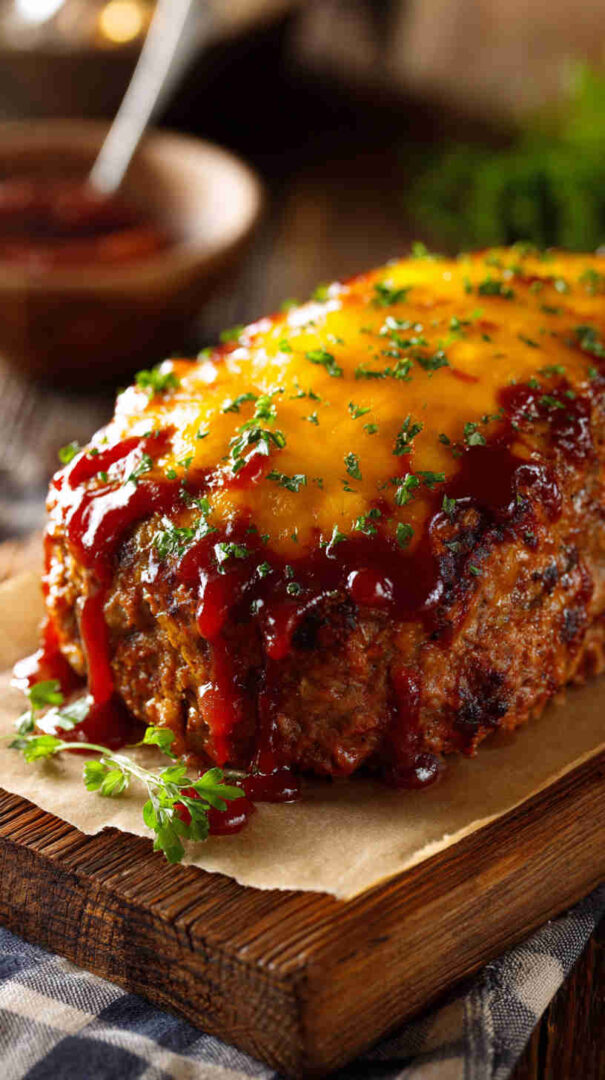 Tender, cheesy, BBQ-glazed meatloaf cooked low and slow for juicy perfection—easy comfort food everyone craves!
