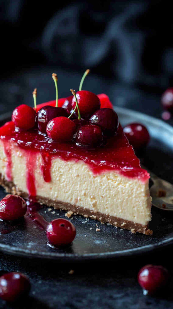 The almond extract adds a warm, nutty sophistication that pairs beautifully with the bright, juicy cherry topping, giving a sophisticated Cherry Bakewell-inspired twist. It’s incredibly forgiving for beginners (no water bath required!), uses simple pantry staples, and looks stunning on any dessert table. Whether you’re hosting a dinner party, bringing a dish to share, or just craving something special, this hands-off dessert feels elegant yet effortless, impressing everyone with minimal stress.