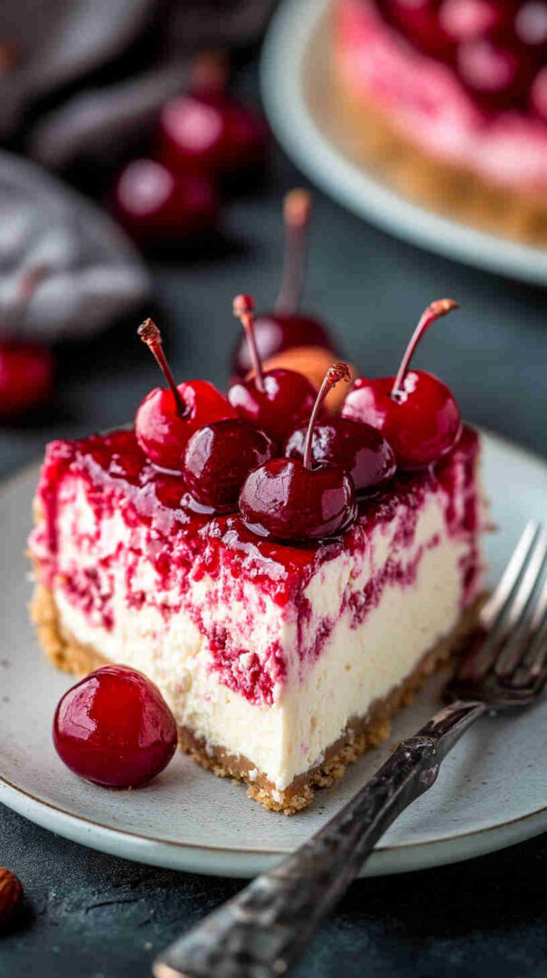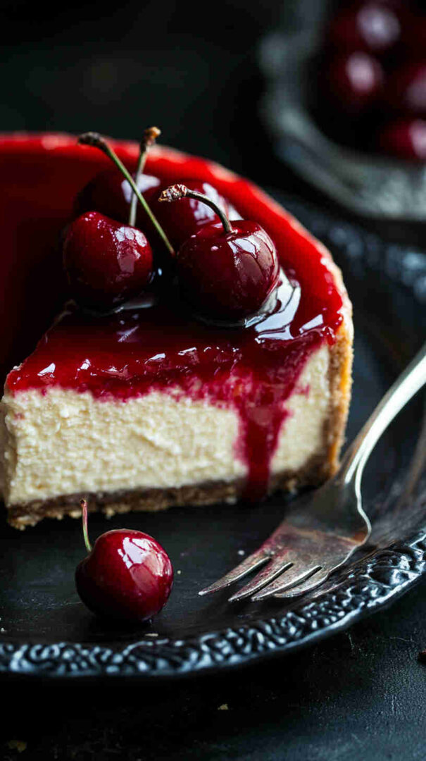 Store the cooled cheesecake covered in the refrigerator for up to 5 days—the flavors actually deepen after 1-2 days. For longer storage, wrap individual slices tightly in plastic wrap and aluminum foil, then freeze for up to 2 months. Thaw overnight in the refrigerator before serving. Avoid freezing with fresh cherry topping if using homemade (canned pie filling freezes better). Keep leftovers in an airtight container to prevent absorbing fridge odors.