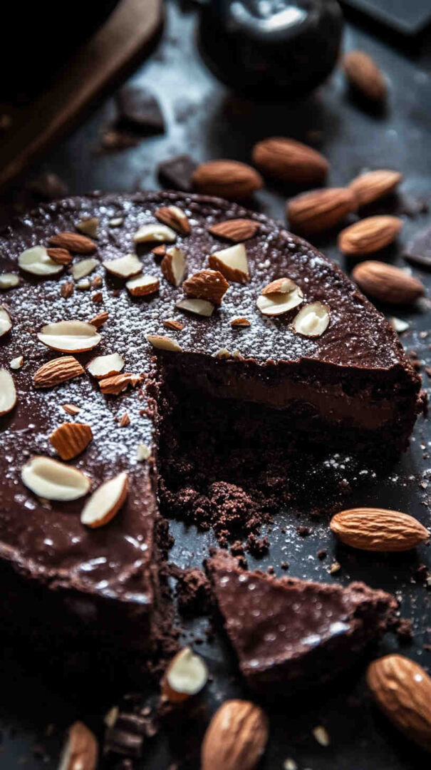 - Serve with joy and elegance — Carefully lift the torte out using the parchment paper and transfer to a serving plate. Dust with powdered sugar, add fresh berries or whipped cream, slice generously, and enjoy this luxurious chocolate-almond delight!