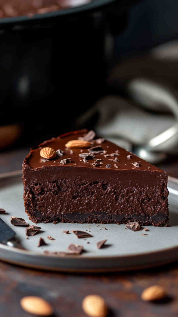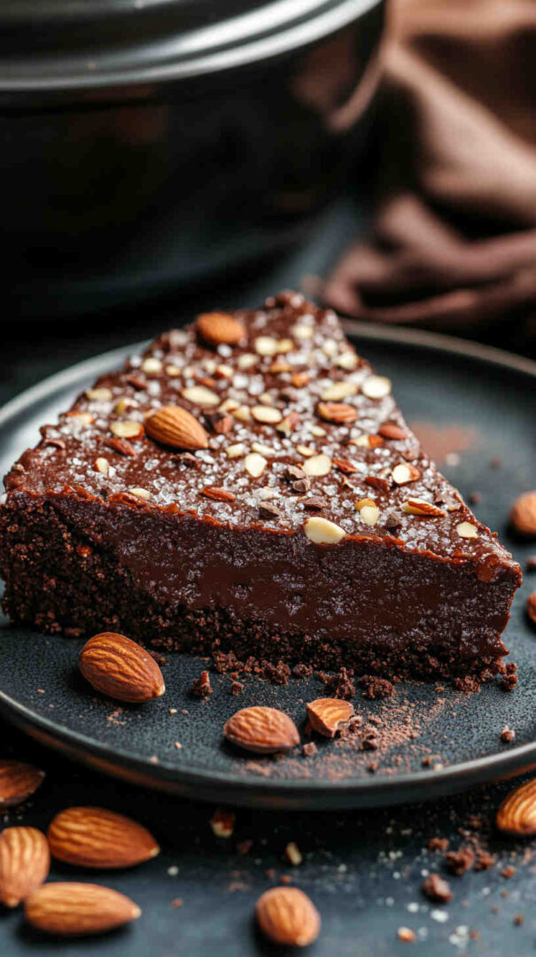Rich, fudgy slow cooker chocolate almond torte — elegant, gluten-free, and incredibly easy to make.