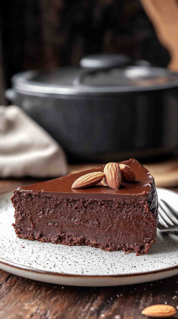This rich and elegant Slow Cooker Chocolate Almond Torte combines deep chocolate flavor with the nutty sweetness of almond meal for a dense, fudgy cake. Cooked gently in the crockpot, it delivers a sophisticated flourless-style dessert without turning on the oven. Perfect for chocolate lovers seeking a luxurious yet effortless treat.