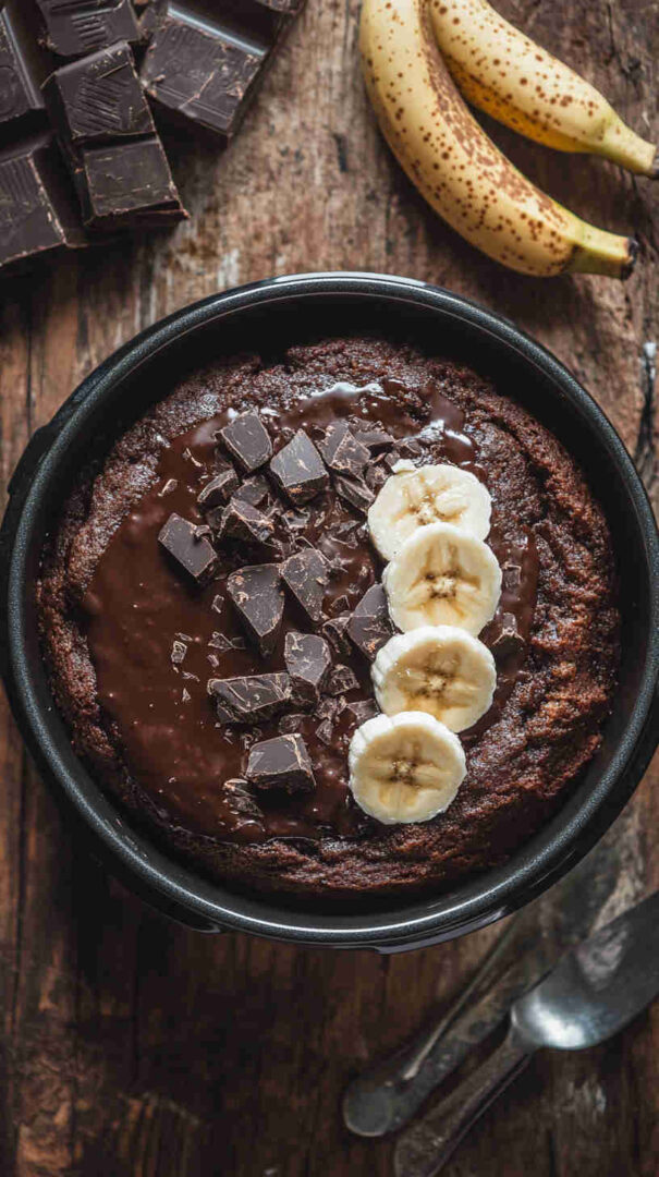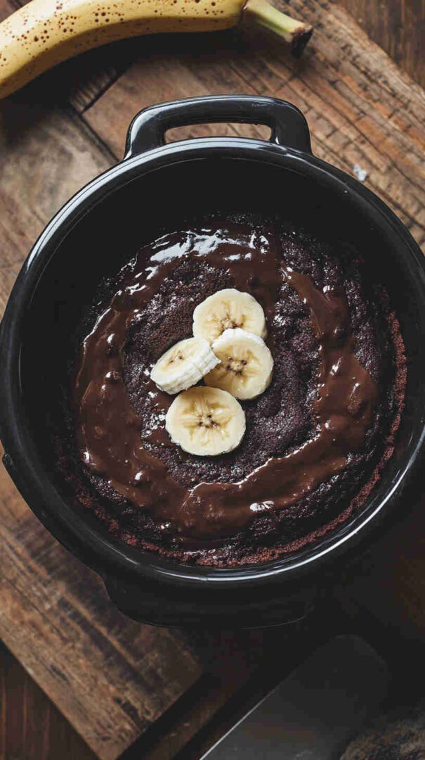 Moist, fudgy slow cooker chocolate banana cake—rich chocolate meets sweet banana in an easy, no-oven dessert.