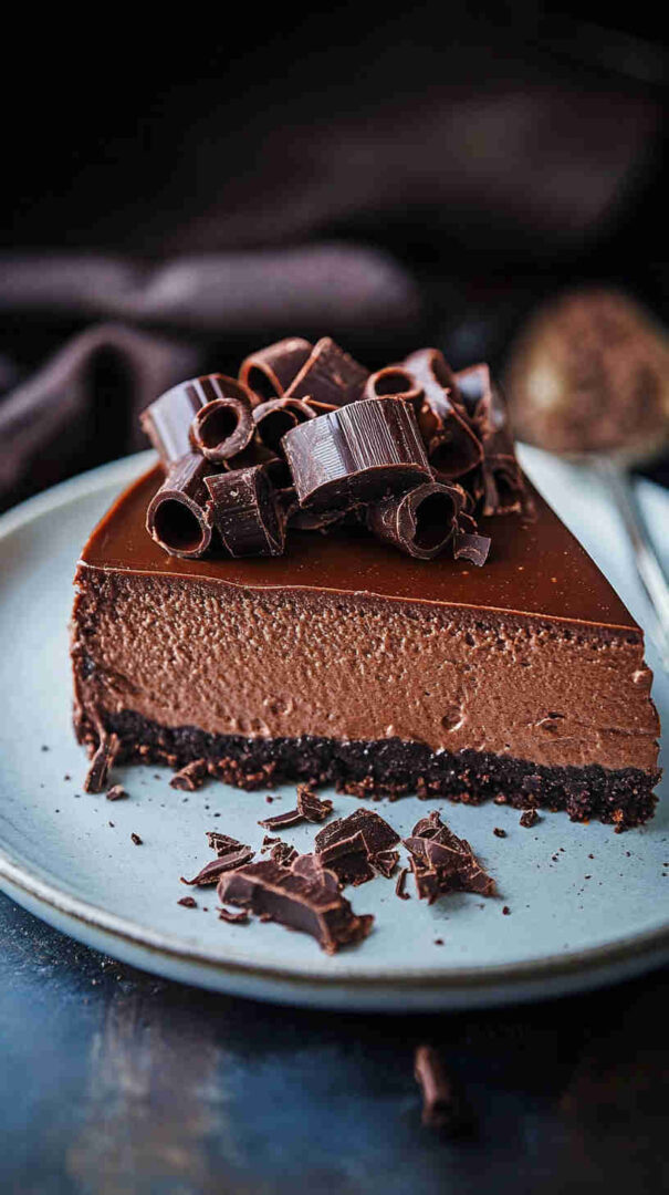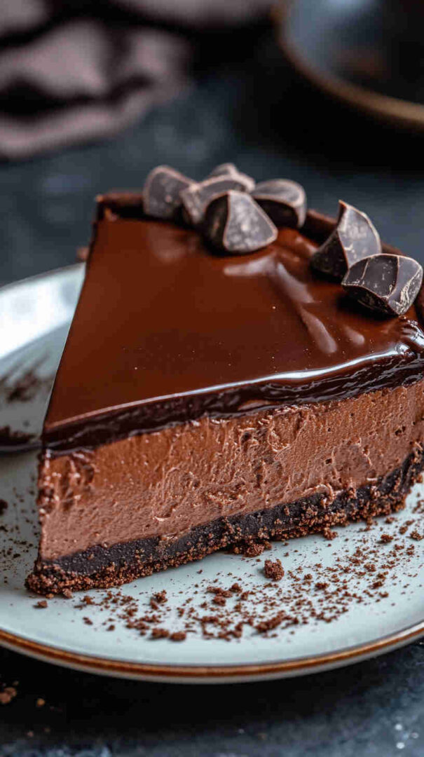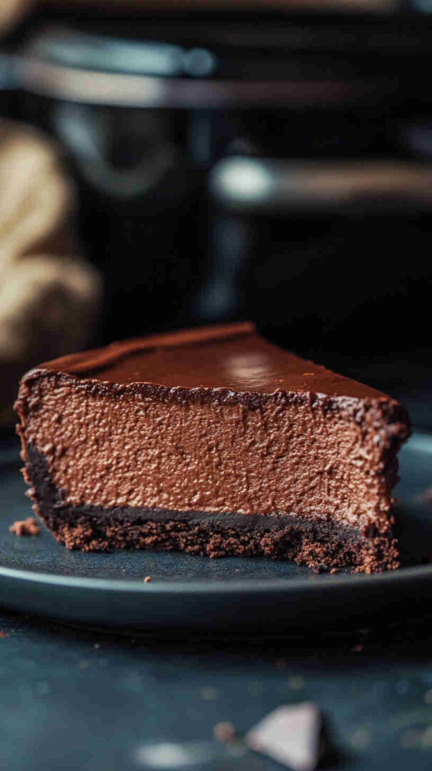 Gluten-free? Choose gluten-free chocolate cookies or graham crackers for the crust. Dairy-free adaptations are possible with vegan cream cheese, plant-based butter, and dairy-free chocolate/sour cream alternatives — results will be slightly softer but still delicious. Add mini chocolate chips or chopped nuts on top after cooking for extra texture.