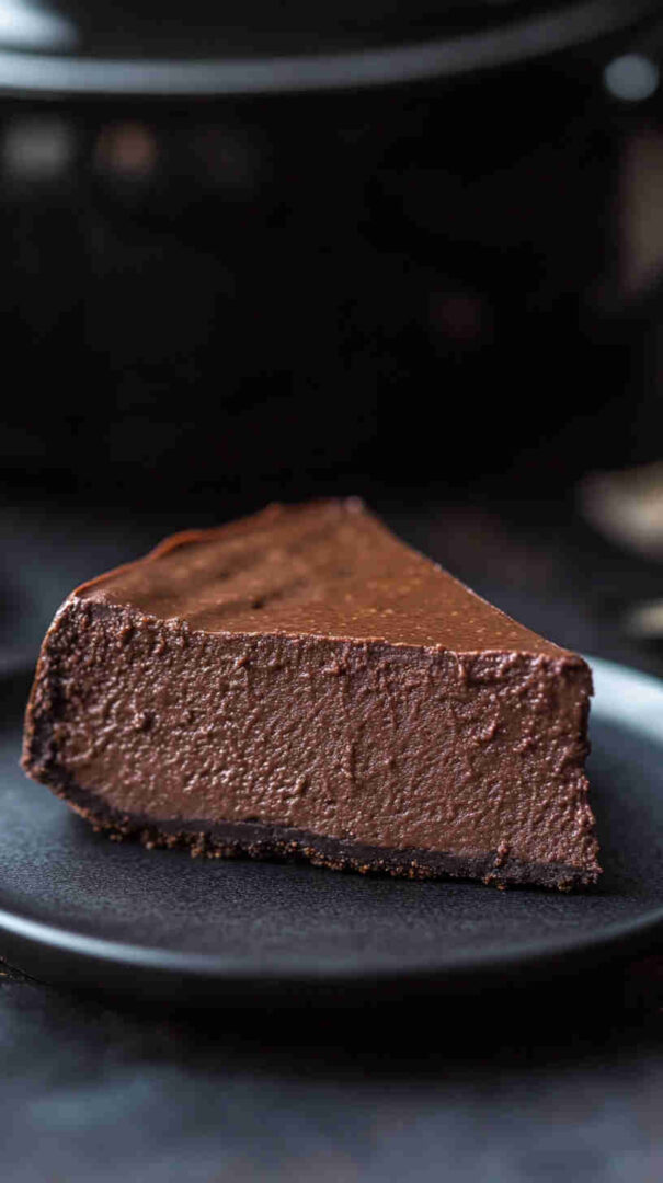 Creamy, rich slow cooker chocolate cheesecake with cookie crust — easy, oven-free, and decadently delicious!