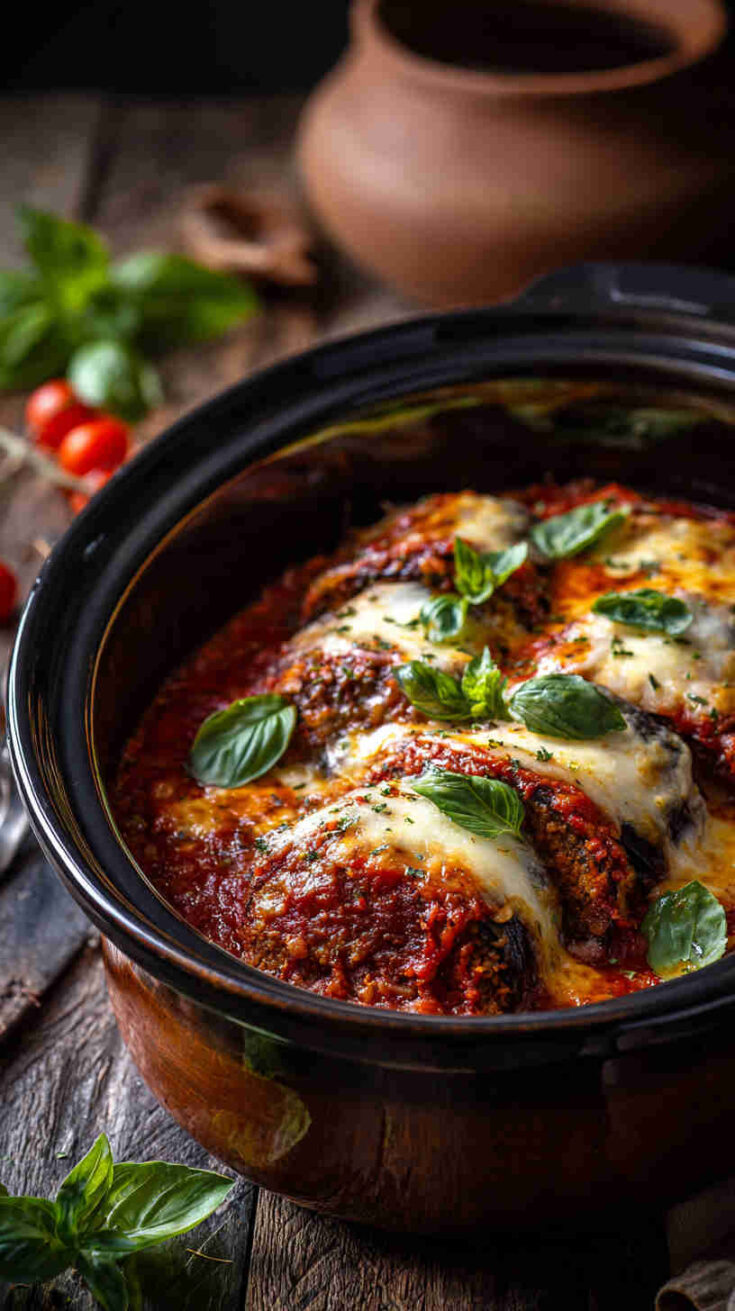 This Slow Cooker Eggplant Parmesan transforms classic Italian comfort into a hands-off delight. Tender eggplant layers with marinara, mozzarella, and Parmesan melt into a bubbly, cheesy masterpiece—perfect for cozy dinners without frying or fuss.
