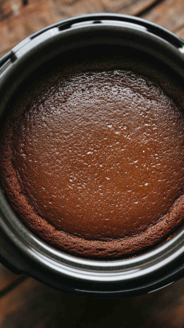 - Set it to slow and cozy: Cover the slow cooker and cook on LOW for 2 to 2½ hours. Resist peeking—the steady heat works its magic to create a beautifully moist cake.