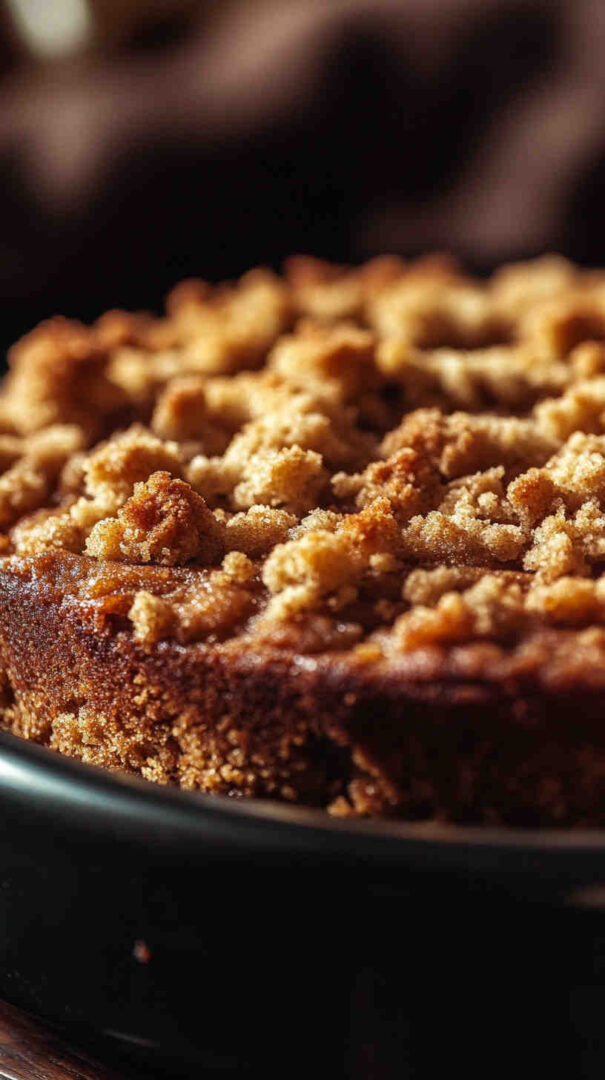 This cake freezes beautifully: wrap individual slices tightly in plastic wrap and place in a freezer bag for up to 2 months. Thaw overnight in the fridge or warm in the microwave for 20-30 seconds. The streusel topping may soften slightly in storage, but the flavor remains wonderful.