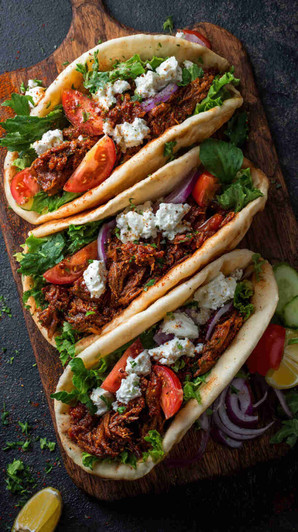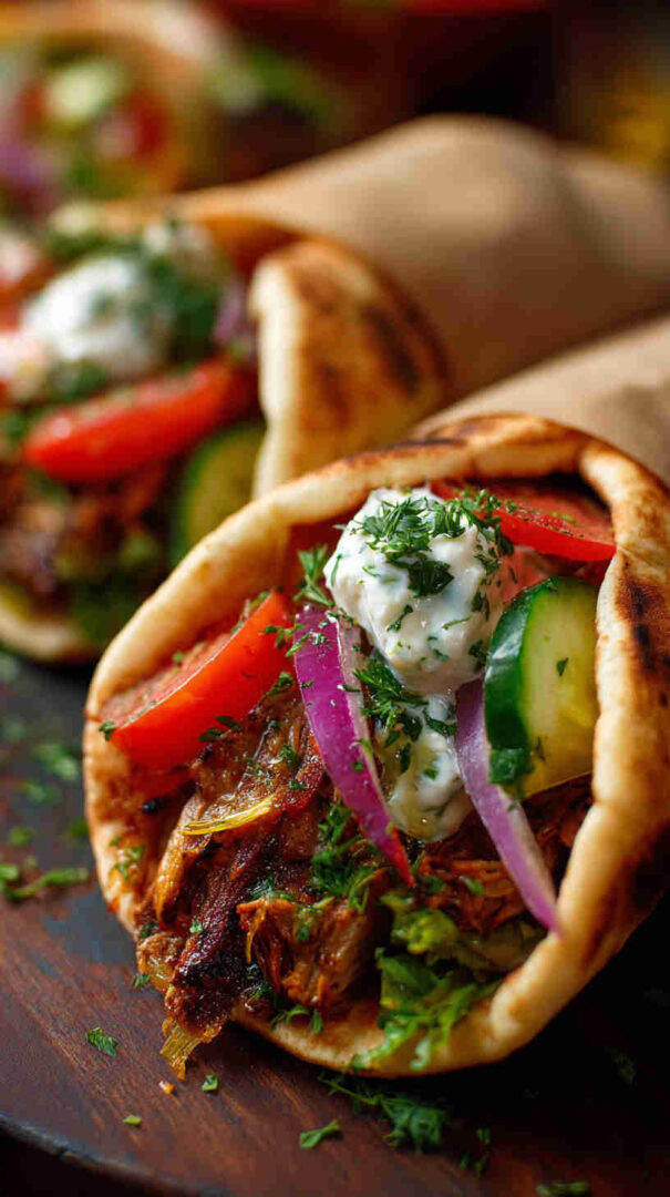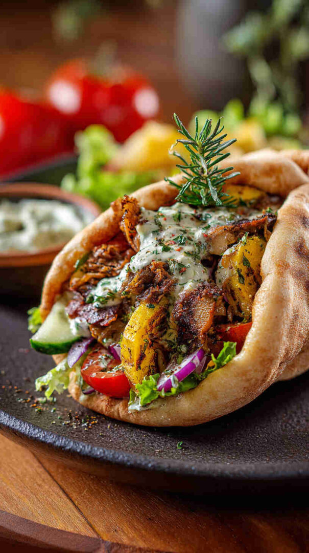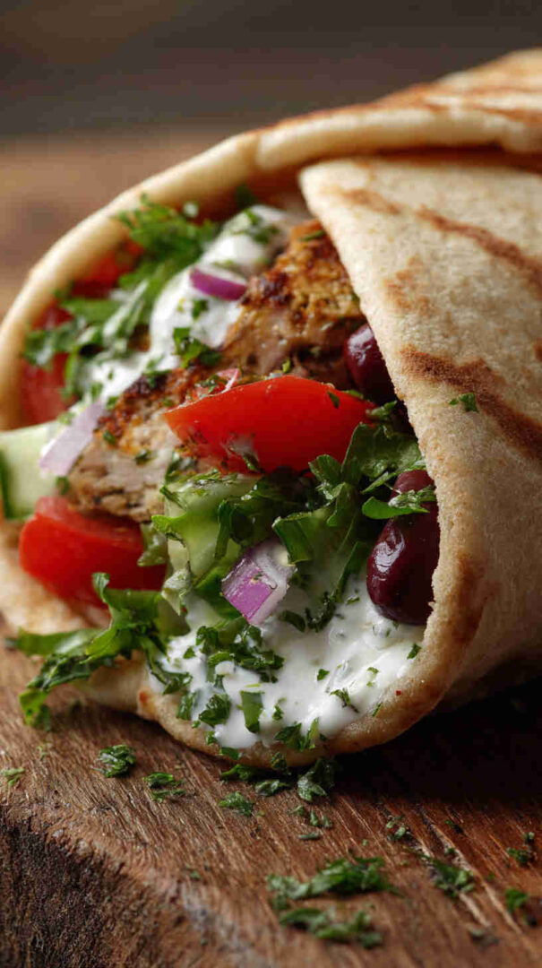Make it vegan by using plant-based yogurt in the tzatziki or skipping it entirely and adding a drizzle of tahini-lemon sauce. Swap chickpeas for lentils, white beans, or jackfruit for different textures. Add eggplant cubes for a classic Greek vegetable twist, or include artichoke hearts for briny flavor. For spicier filling, stir in red pepper flakes, harissa paste, or smoked paprika.