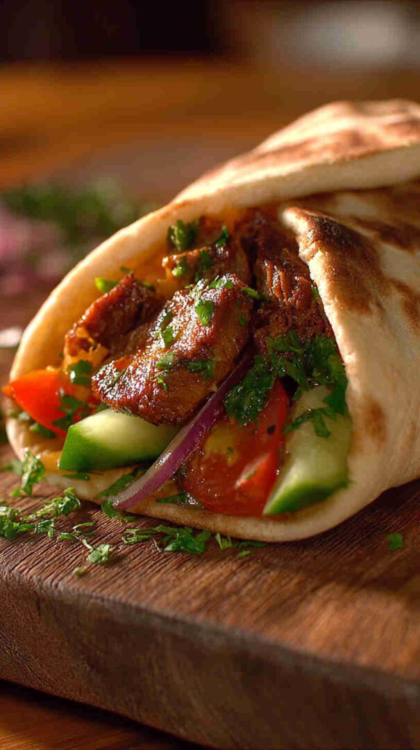 - Warm your pitas — Pop the pitas in a dry skillet over medium heat for 30–60 seconds per side or wrap in foil and warm in a 350°F oven for 5 minutes. They’ll be soft, steamy, and perfect.