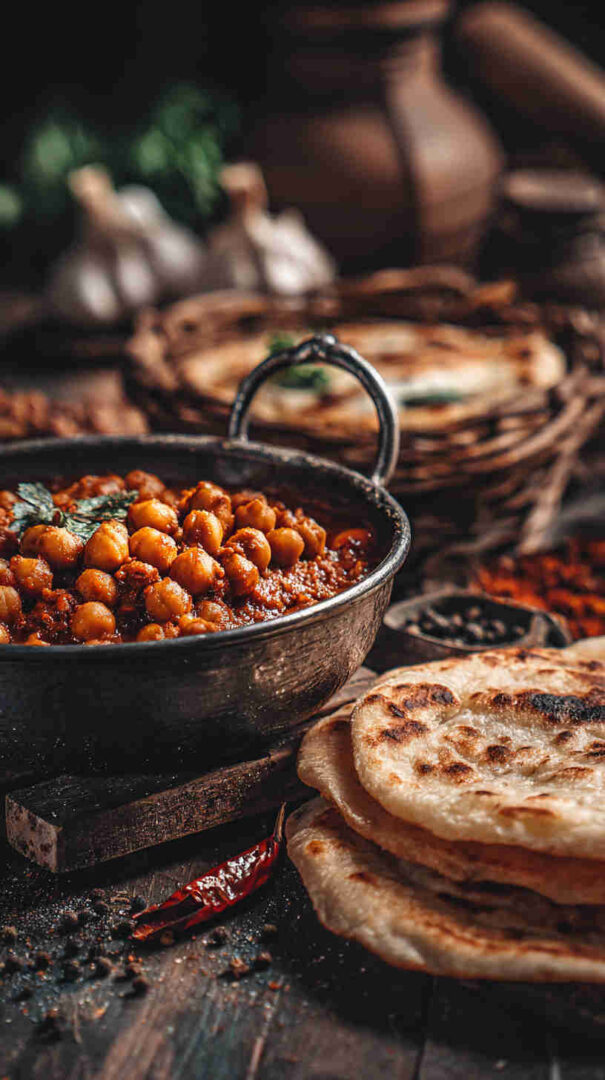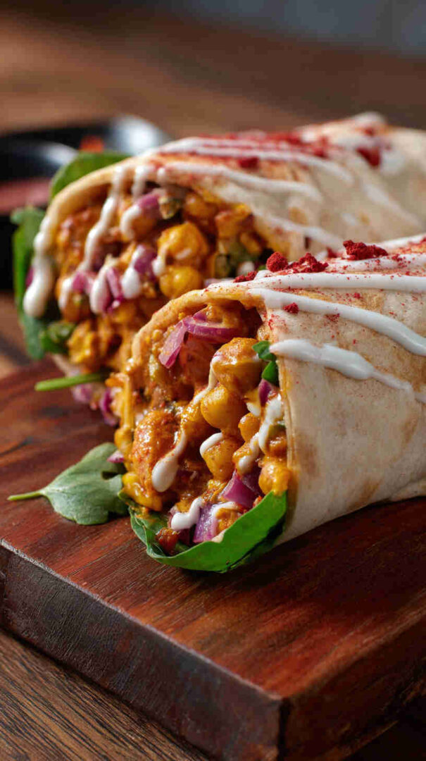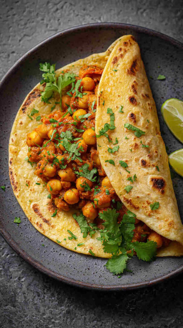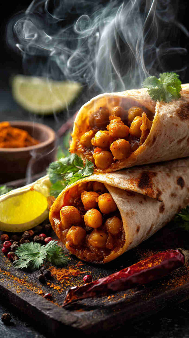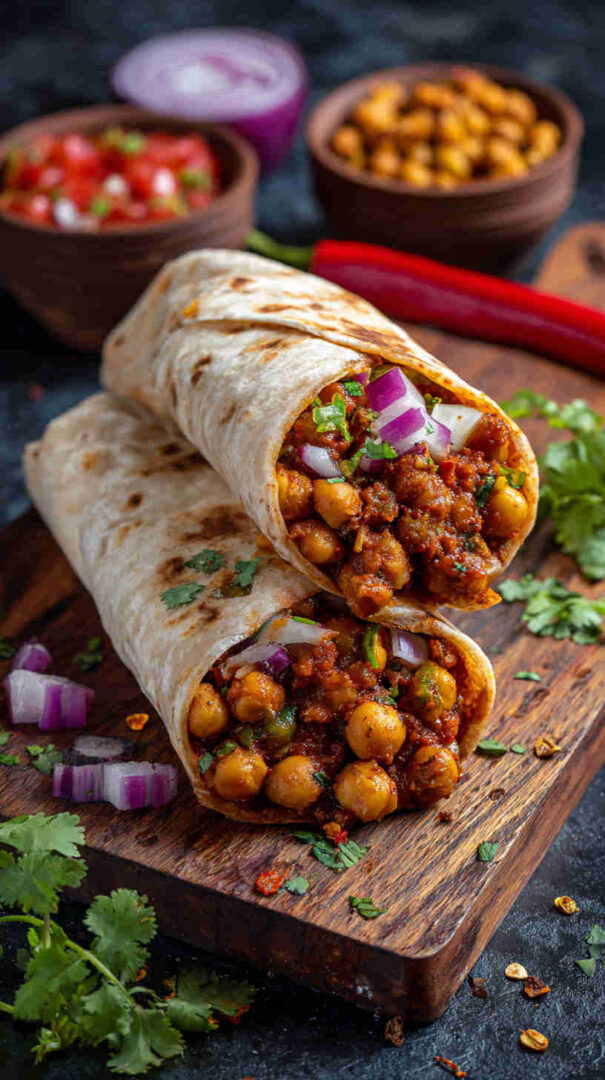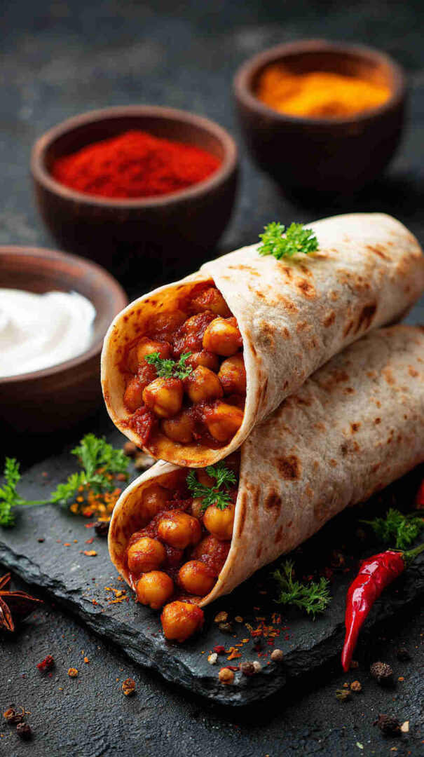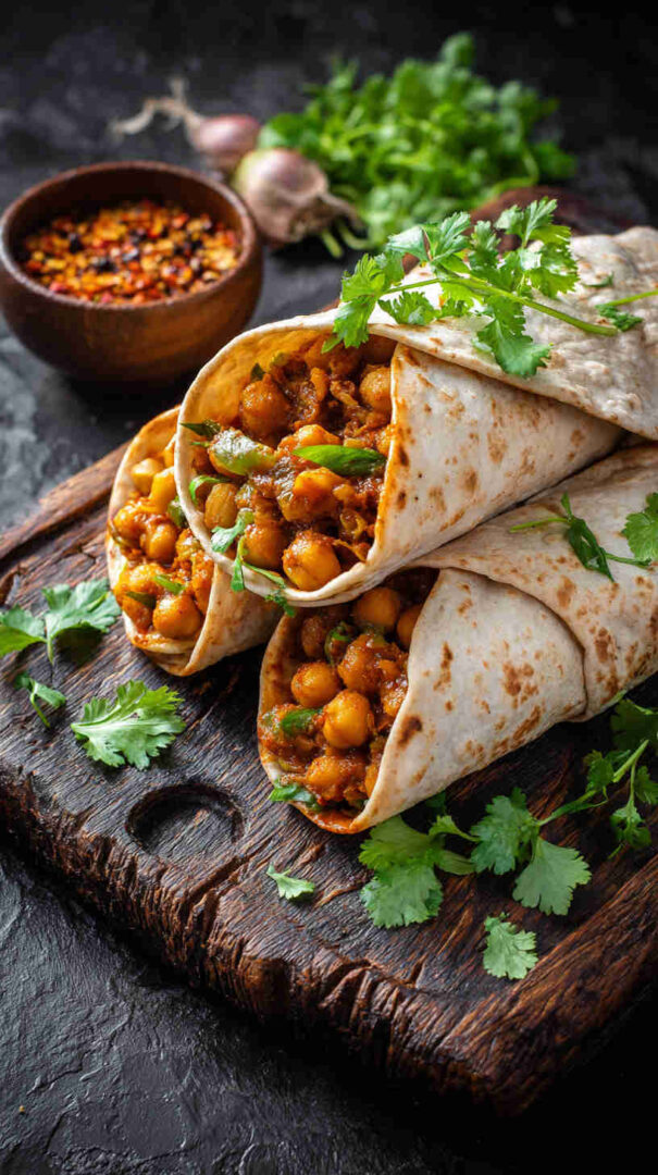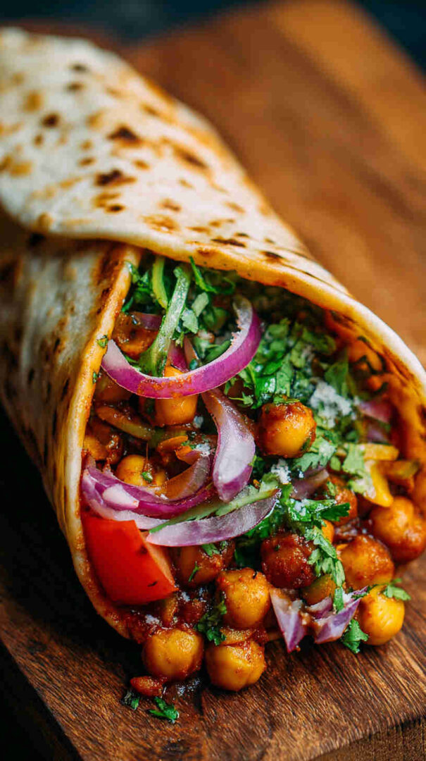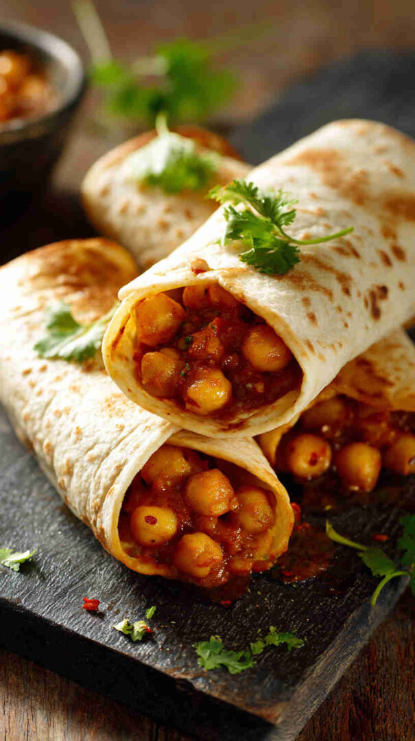 - Serve street-food style: Warm your favorite wraps, naan, or tortillas. Pile in the chana masala, add extra cilantro, sliced onions, or yogurt if desired, then roll tightly.