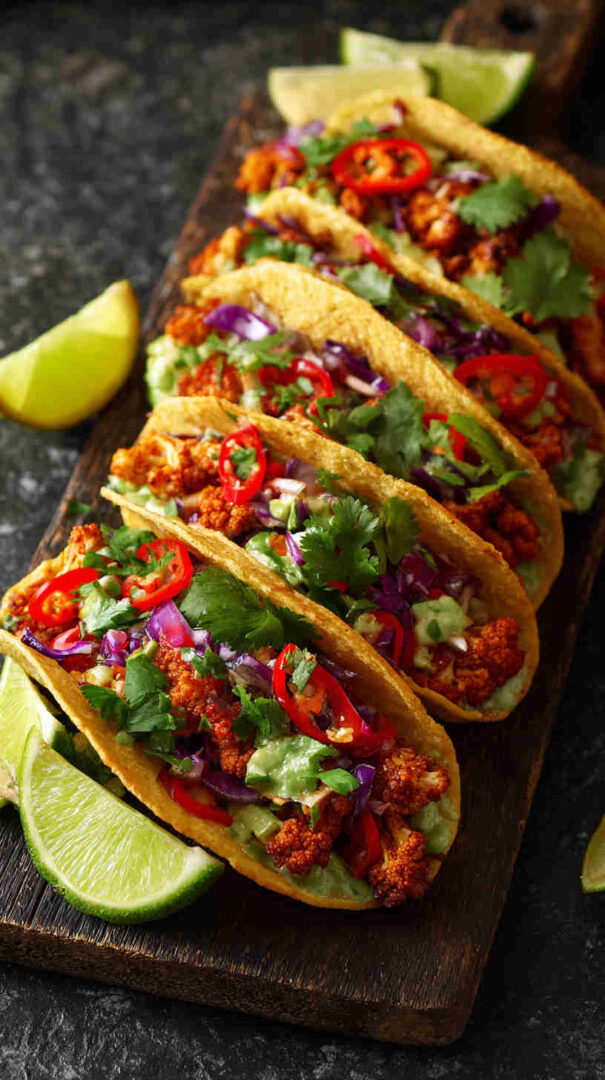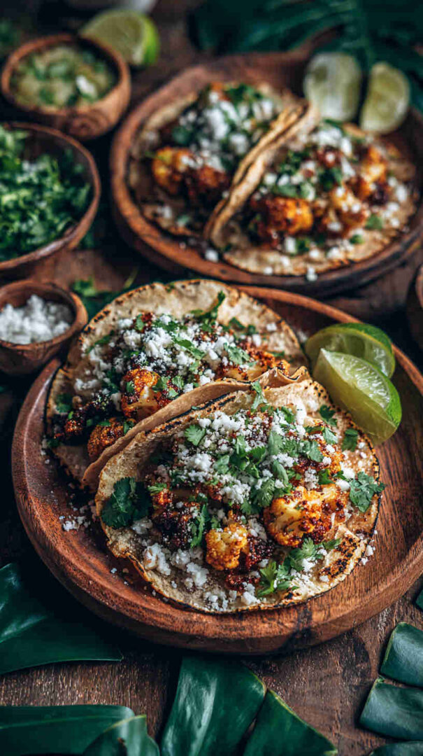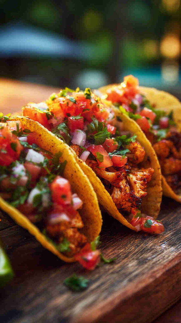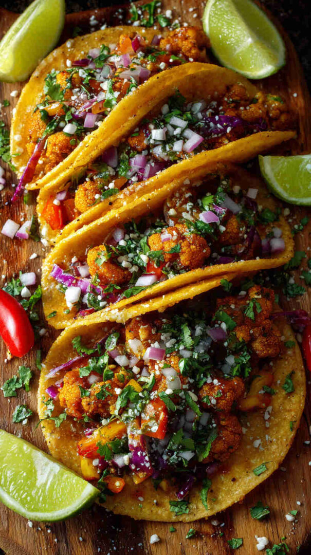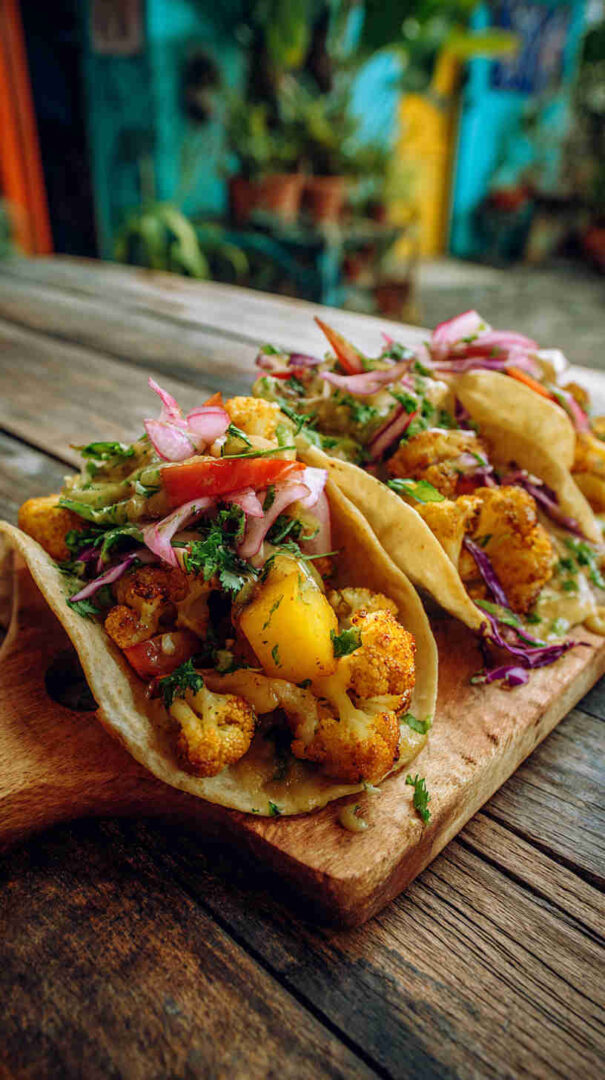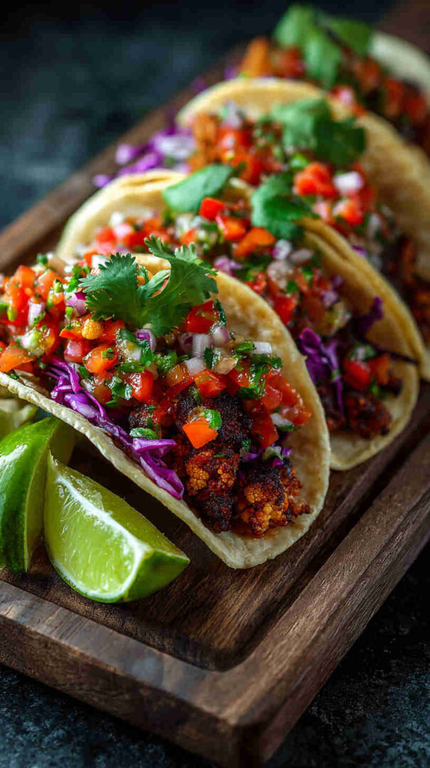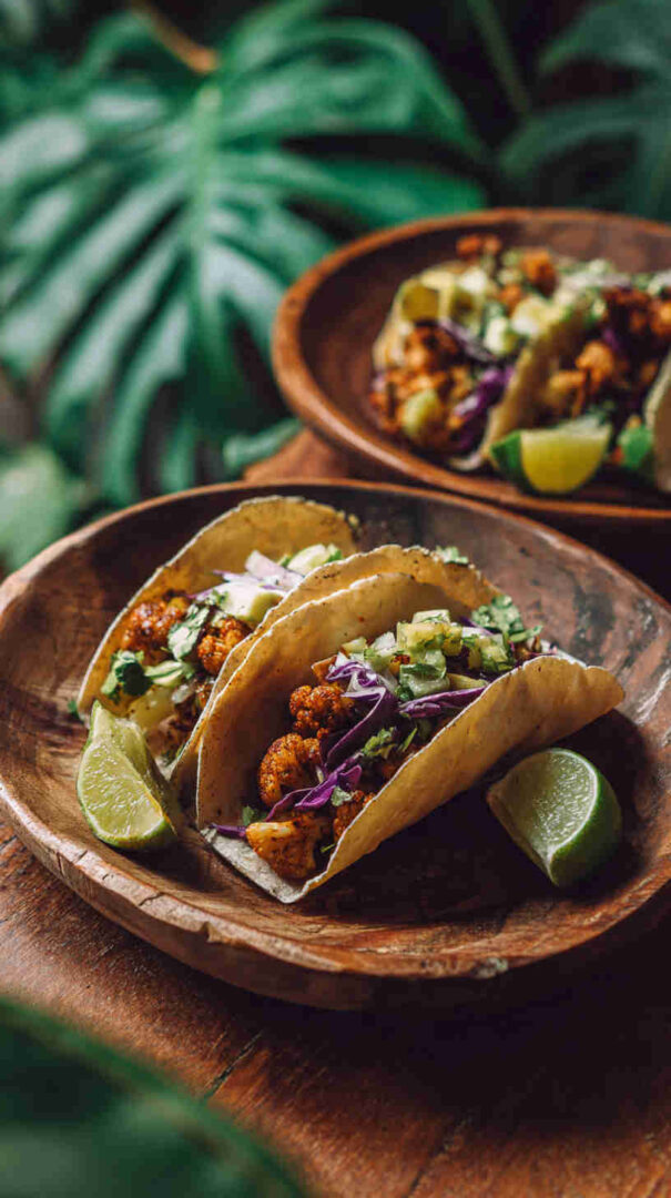 Tender cauliflower florets soak up authentic Jamaican jerk seasoning in the slow cooker, becoming irresistibly smoky, spicy, and slightly sweet. Paired with fresh pineapple salsa, creamy avocado, and warm tortillas, these vegan tacos deliver bold Caribbean street food flavor with minimal effort — perfect for Taco Tuesday or any laid-back gathering.