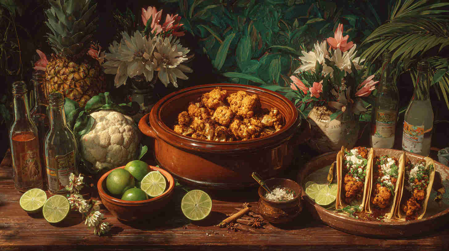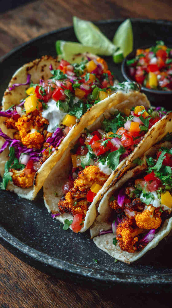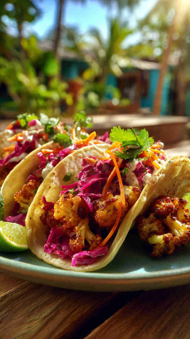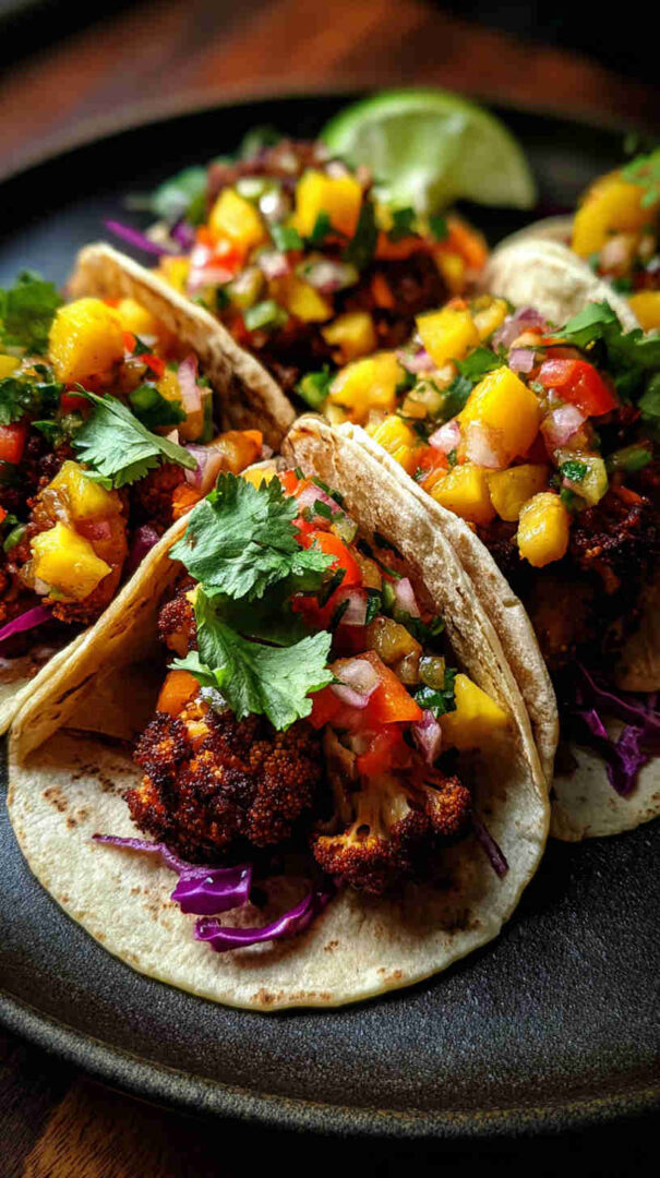 Tender slow-cooked jerk-spiced cauliflower tacos with tropical pineapple salsa — bold, vegan Caribbean street food flavor made easy.