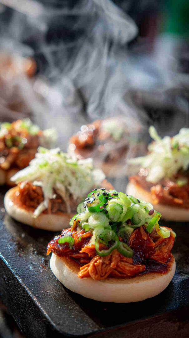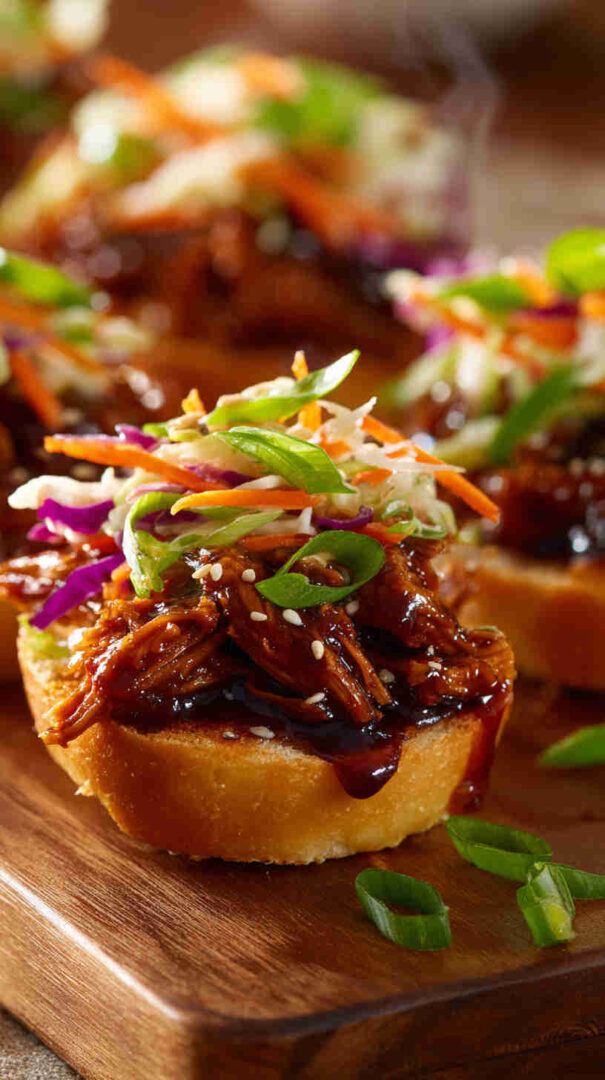 For sliders, soft Hawaiian or vegan slider buns work best—they hold the saucy filling without falling apart. Optional sesame slaw (cabbage, carrots, sesame seeds, rice vinegar dressing) adds crunch and freshness that completes the street-food feel.